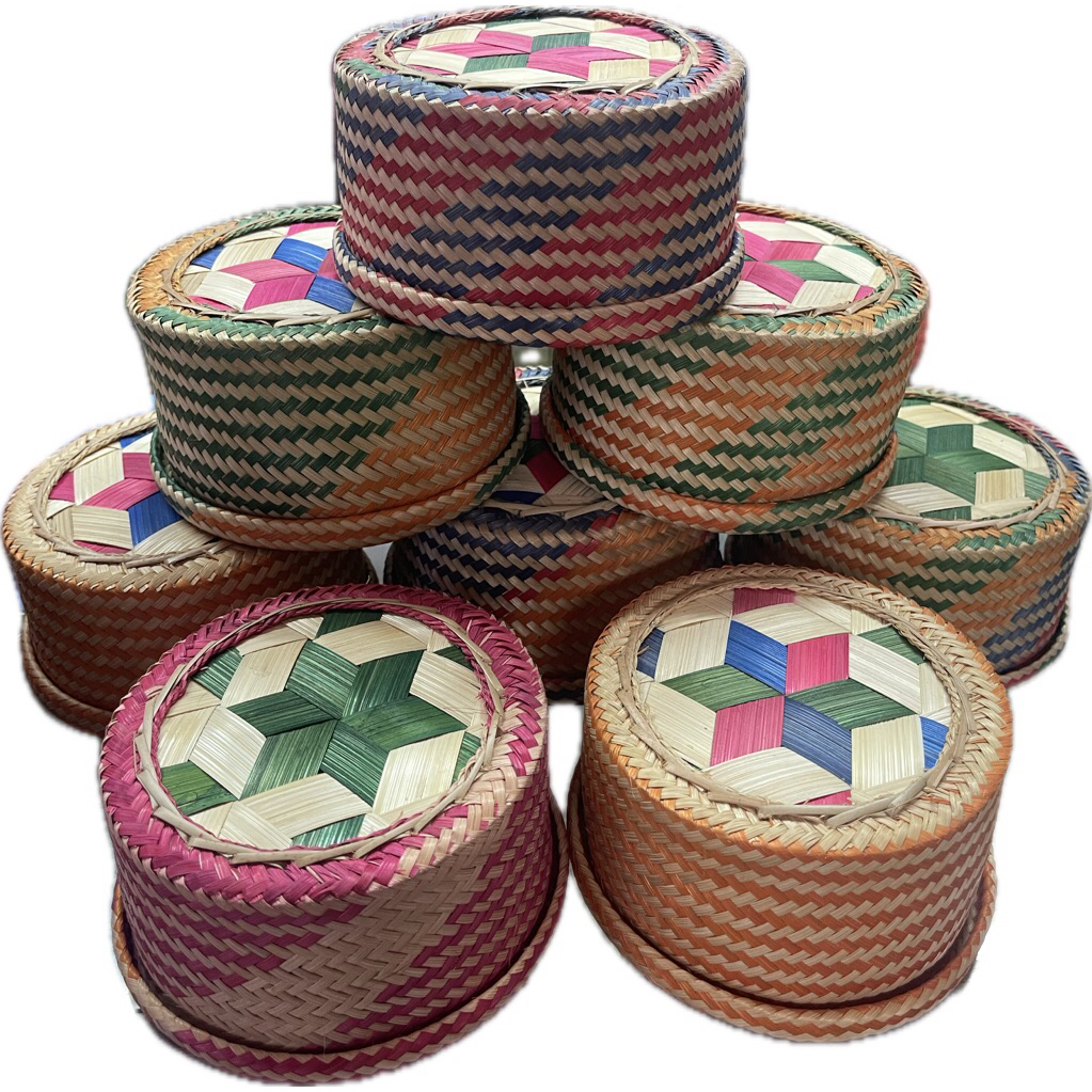 ฝาสี ฝากระติบไม้ไผ่ (คละสี) ฝาครอบจาน