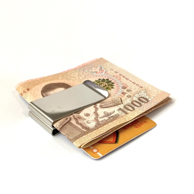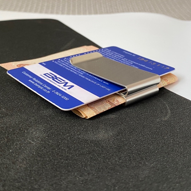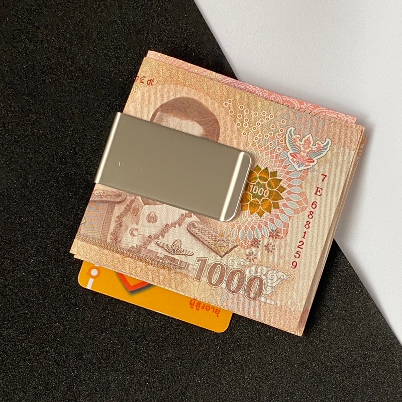คลิปหนีบแบงค์ธนบัตร สีเงิน รุ่น 2 way หนีบได้2ด้าน แยกฝั่ง หนีบใส่บัตร การ์ด คลิบหนีบเงิน โลหะขัดด้าน silver clip money