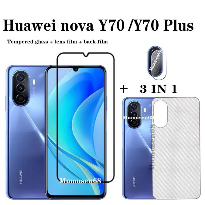 (3 In 1) ฟิล์มกระจกนิรภัยกันรอยหน้าจอ ฟิล์มกล้อง ฟิล์มด้านหลัง สําหรับ Huawei Nova Y70 Y70 Plus Y90 Y60 Huawei Nova 9SE Nova 8i 7 7SE 7i