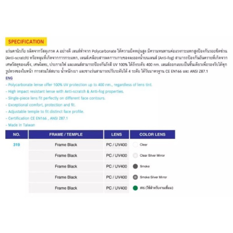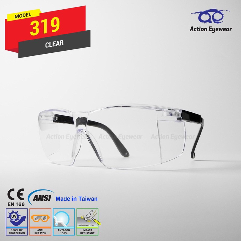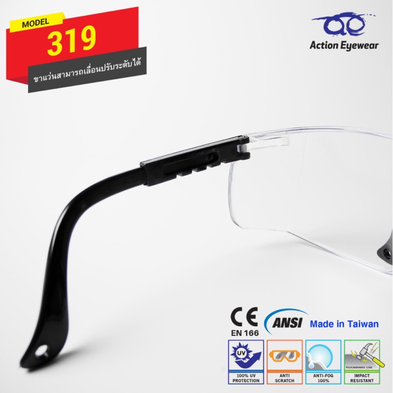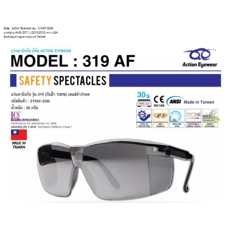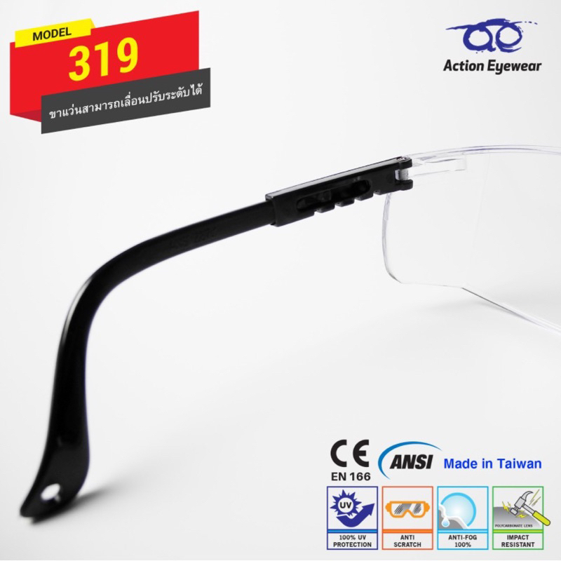 แว่นตานิรภัย แบรนด์ Action Eyewear รุ่น : 319 AF (กันฝ้า 100%) มีของแถมให้ทุกออเดอร์ค่ะ
