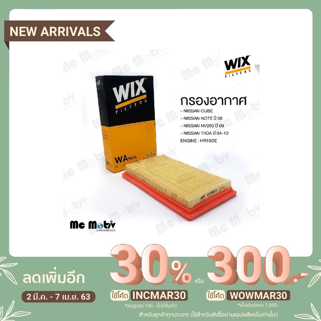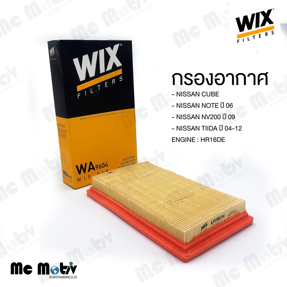 กรองอากาศ Wix Filters สำหรับ Nissan Tiida เครื่อง 1.6/1.8 ปี 06-16(HR16DE), Cube : WA9604