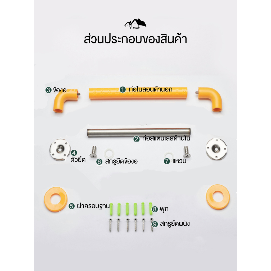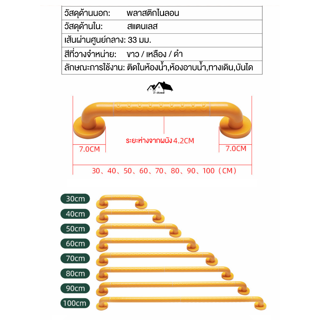 ราวจับกันลื่นพยุงตัวในห้องน้ำ สำหรับผู้สูงอายุ หรือผู้พิการ สินค้าคุณภาพดี ช่วยป้องกันอุบัติเหตุ BE-60