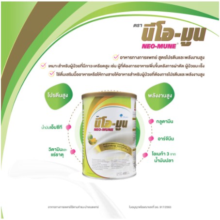 Neo-Mune นีโอมูน สำหรับผู้ที่ต้องการโปรตีนและพลังงานสูง 400 กรัม มะเร็ง หรือผู้ป่วยหลังผ่าตัด