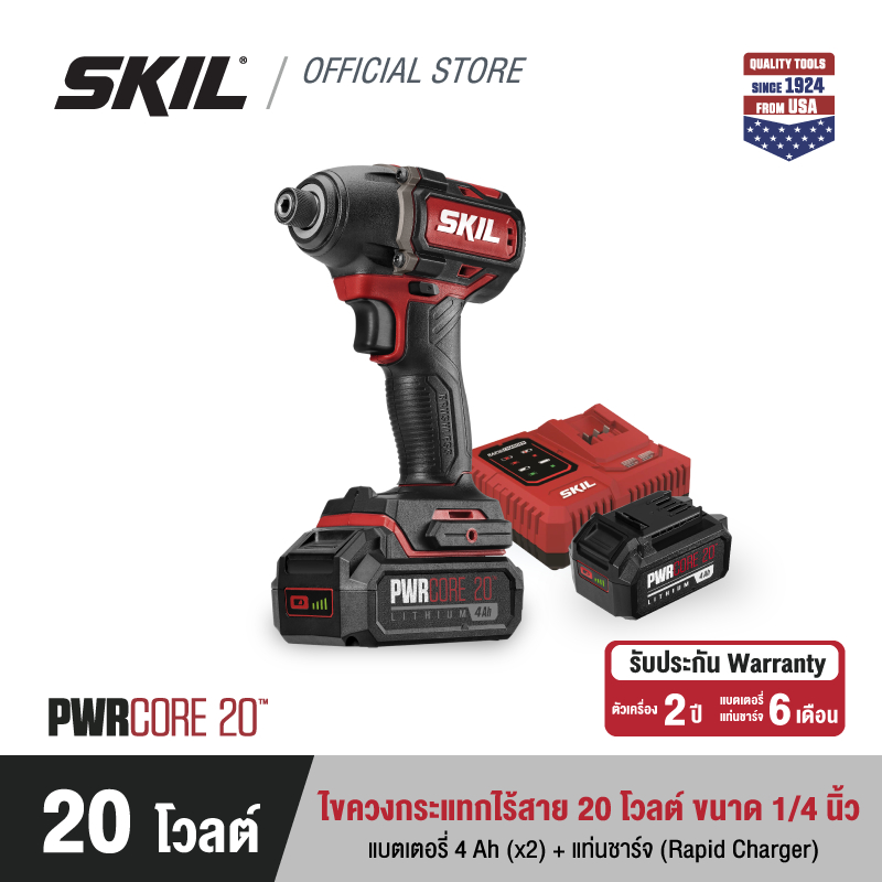 SKIL ไขควงกระแทกไร้สาย 20 โวลต์ 1/4 นิ้ว รุ่น ID5739SE20 พร้อมแบตเตอรี่ 4Ah x 2 ก้อน และแท่นชาร์จเร็ว