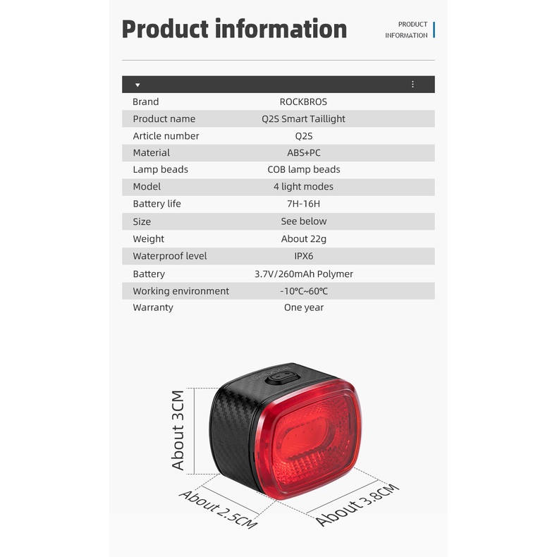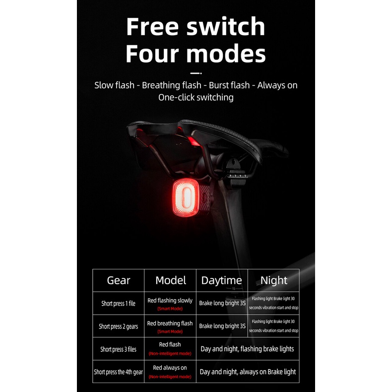 【TH Delivery】ROCKBROS ไฟท้ายจักรยานอัจฉริยะ IPX6 Type-C แบบชาร์จไฟได้ LED