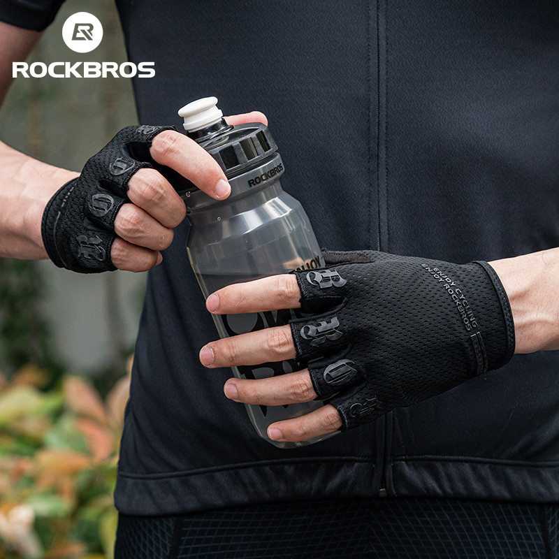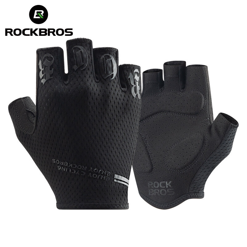 ROCKBROS ถุงมือครึ่งนิ้ว ยืดหยุ่นสูง, กันกระแทก, ระบายอากาศได้, ถุงมือปั่นจักรยาน