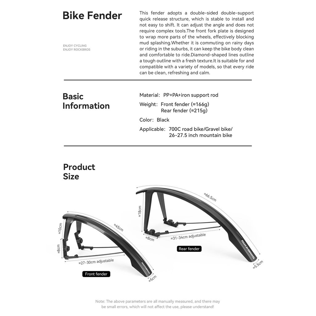ROCKBROS บังโคลนสำหรับจักรยาน ขนาด 26-27.5 และ 700C ปรับได้ทั้งด้านหน้าและหลัง มี Quick-release mount