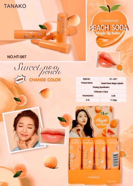 Tanako magic lip balm (peach soda) HT 067 ลิปมันเปลี่ยนสี พีช สีส้มอ่อน