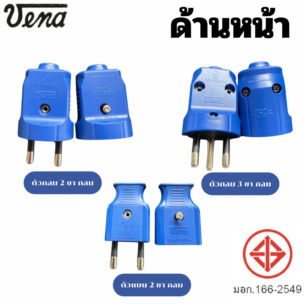 1 ชิ้น Vena ปลั๊กตัวผู้ 2 ขากลม 3ขากลม มี มอก วีน่า คละสี 16A 250V