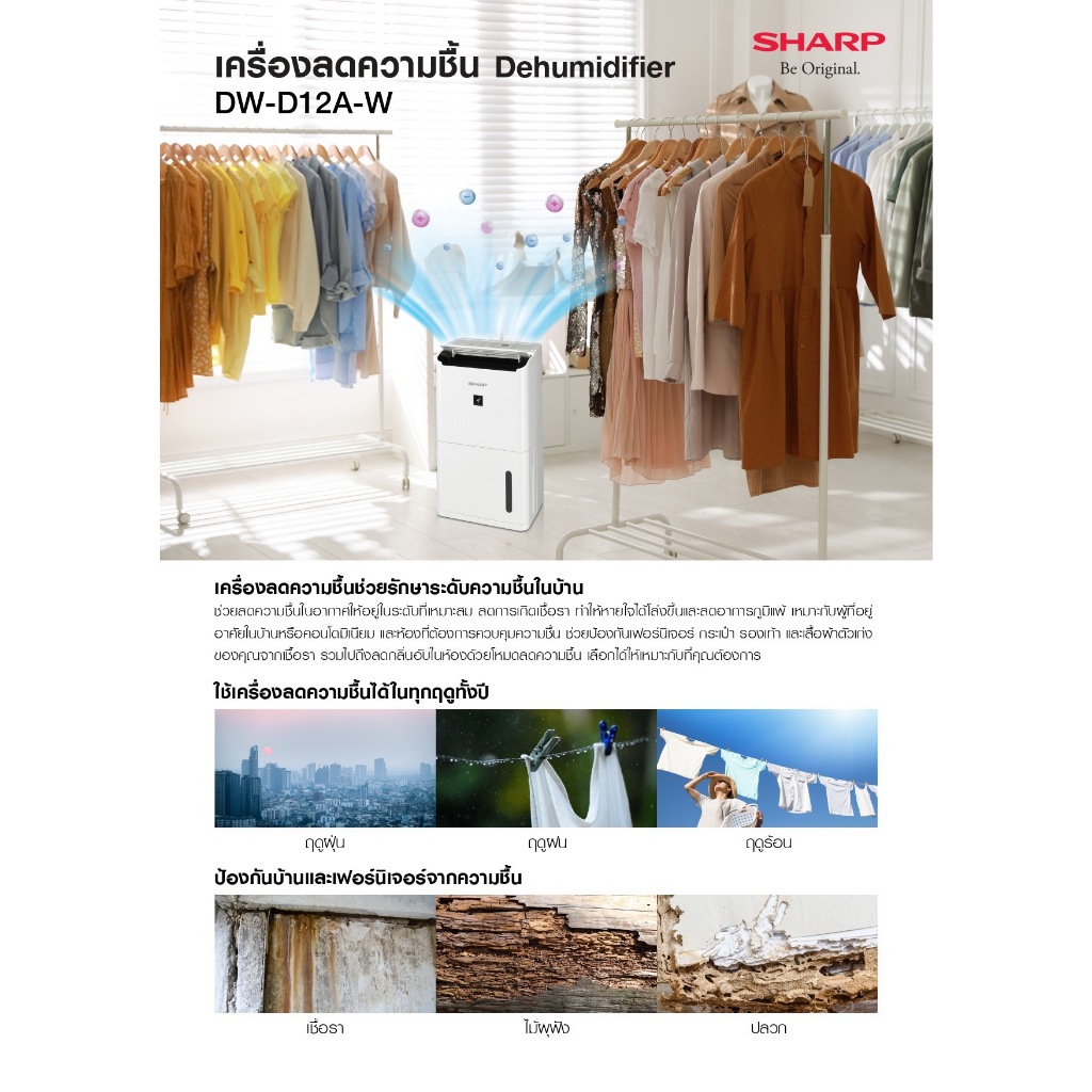 [New]SHARP เครื่องลดความชื้น รุ่น DW-D12A-W ขนาด 12 ลิตรต่อวัน ขนาดถังน้ำ 4ลิตร สำหรับห้อง26ตารางเมตร