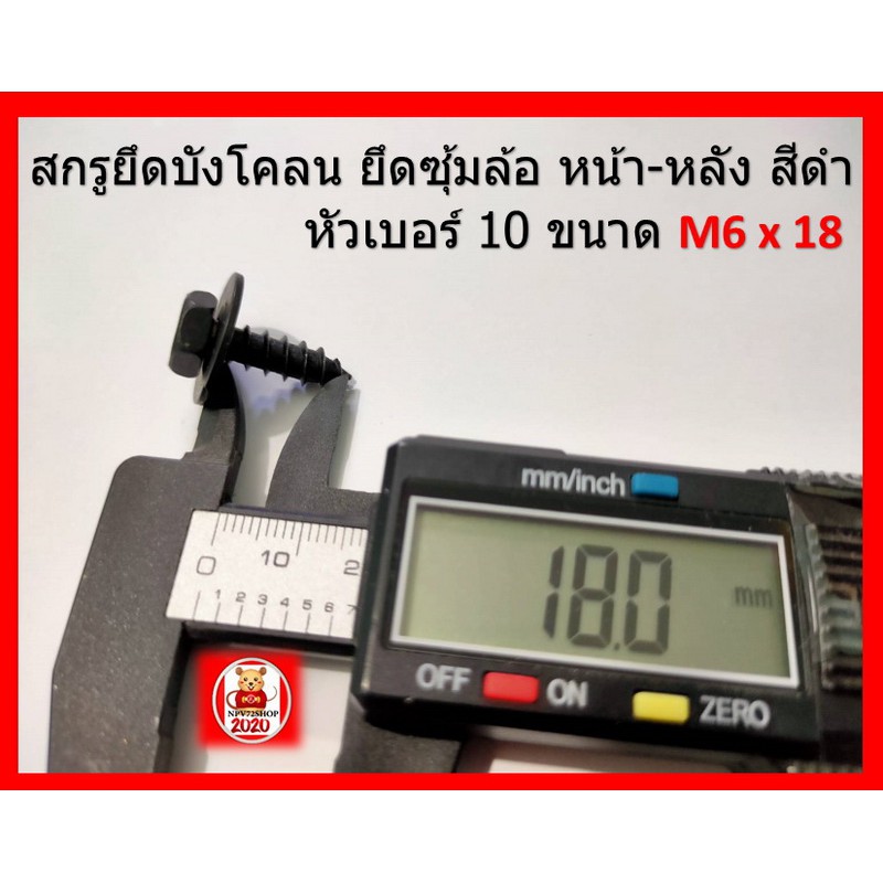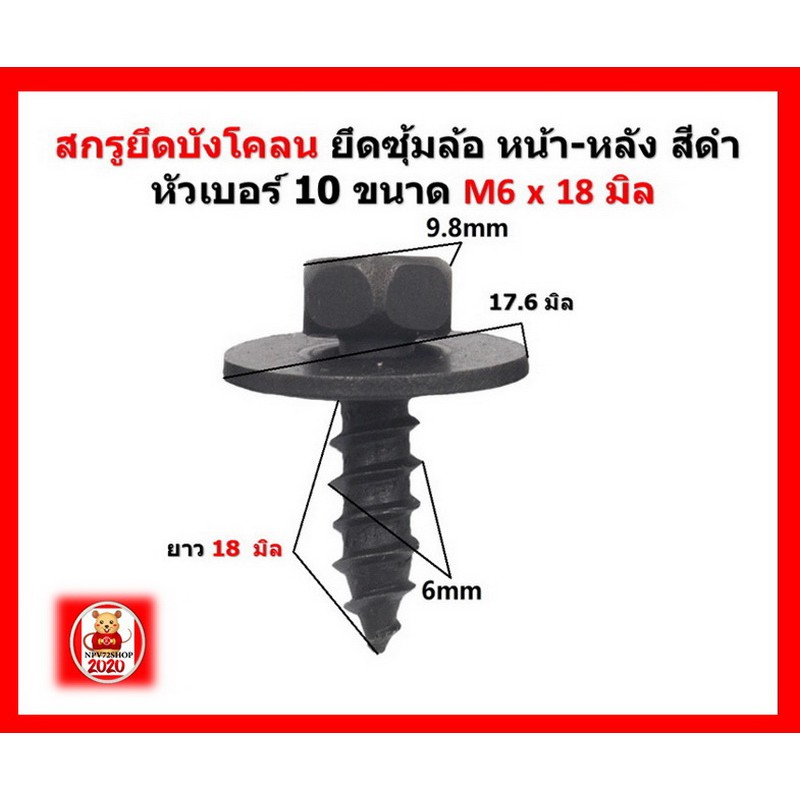 10 ตัว สกรูยึดบังโคลน ยึดซุ้มล้อ หน้า-หลัง สีดำ หัวเบอร์ 10 ขนาด M 6 x 18 ใช้ดอกไขควง PH #2