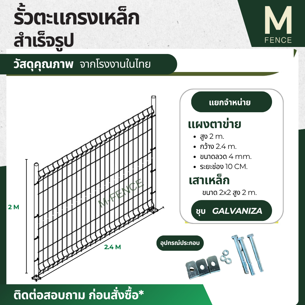M-Fence รั้วตะแกรงเหล็กกัลวาไนซ์ สูง 1/1.5/2 เมตร ยาว 2.4 เมตร หนา 4 mm. ช่องกว้าง 10 cm.