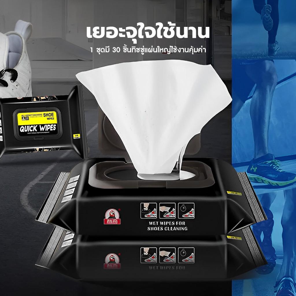 ผ้าเช็ดรองเท้า No-Rinse, 1 แพ็คมี 30 ผ้าเช็ดทำความสะอาดแบบใช้แล้วทิ้งสำหรับรองเท้าหนัง, รองเท้าผ้าใบ
