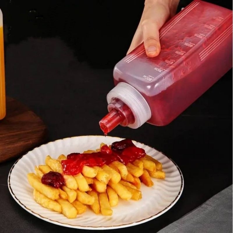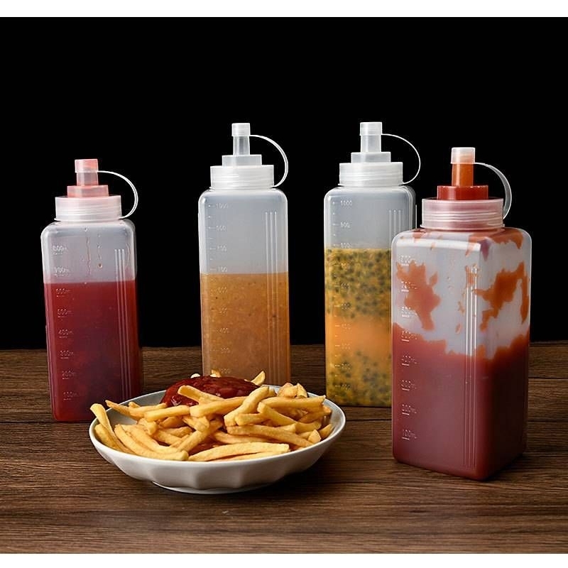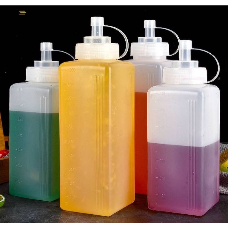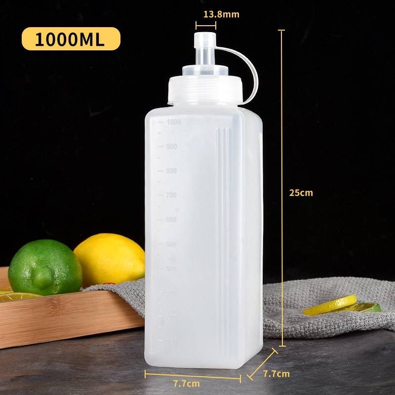 ส่งจากไทย ขวดบีบ สำหรับนมข้น น้ำเชื่อม รูกว้าง บีบง่าย 800/1000 มล ฝาใช้เป็นถ้วยตวงได้