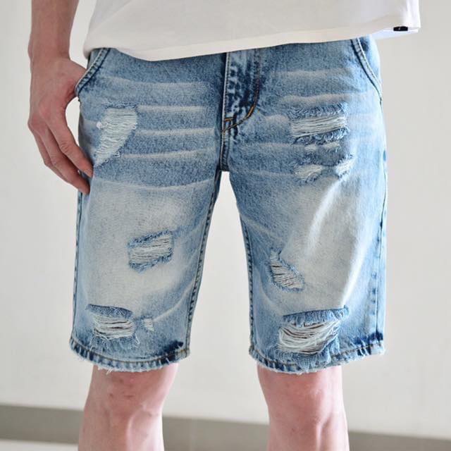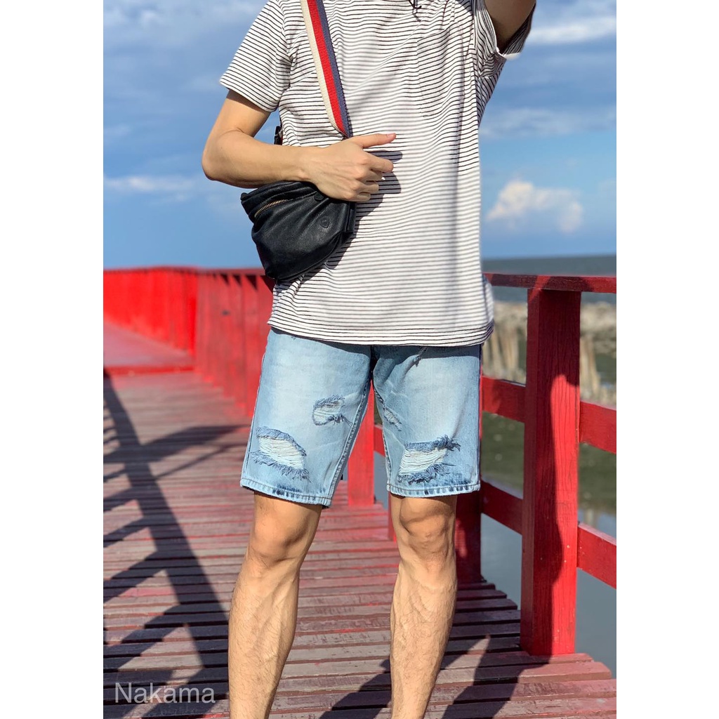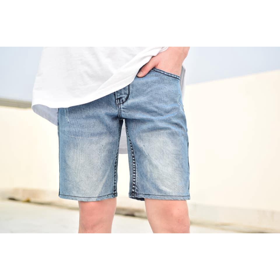 กางเกงยีนส์ขาสั้นผู้ชาย ผ้ายีนส์ฟอก ไสตล์เกาหลี