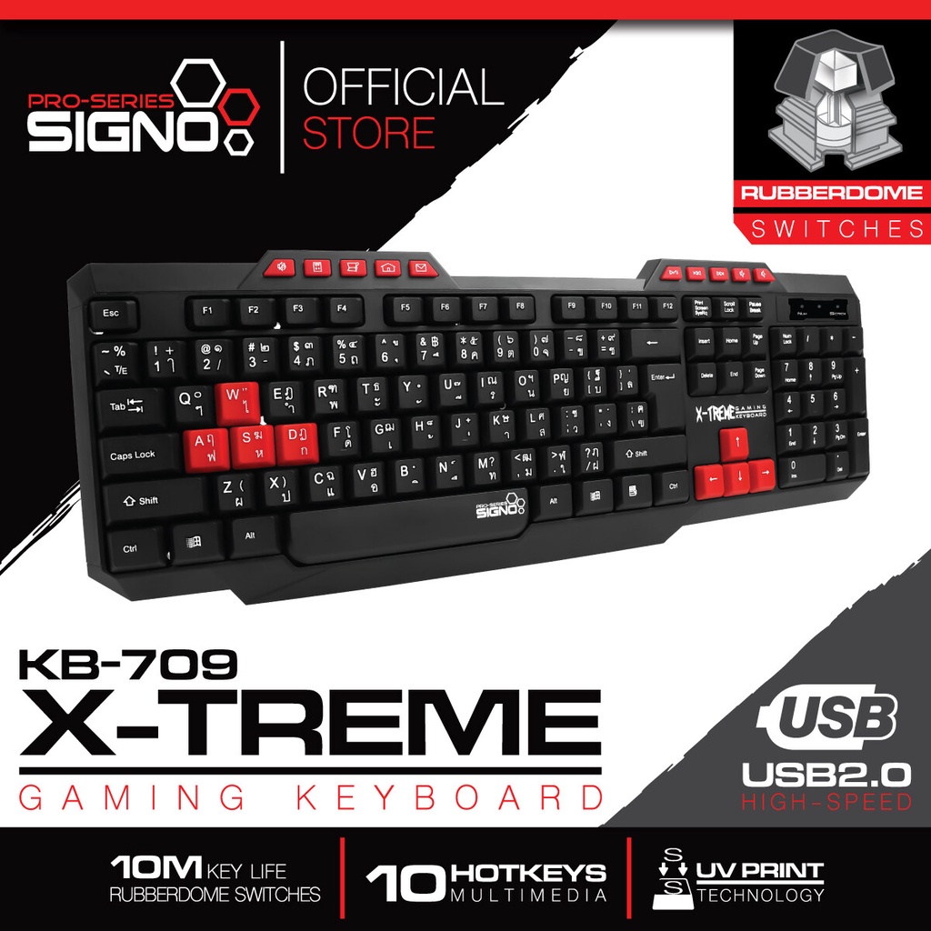 (KB-709) KEYBOARD (คีย์บอร์ดสาย) SIGNO กันน้ำ ทนทาน USB 2.0 สาย1.5M (1Y) -ของแท้