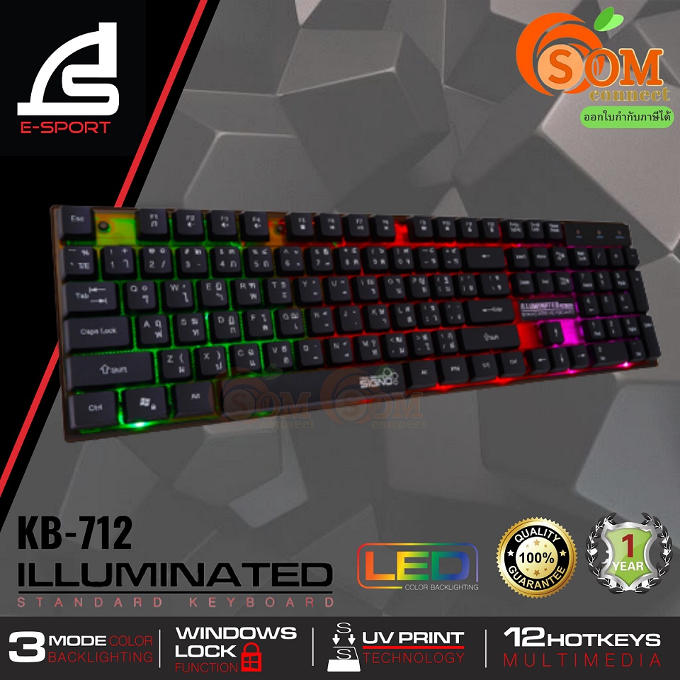 KEYBOARD (คีย์บอร์ดสาย) SIGNO KB-712 มีฟังก์ชั่นปรับแสงไฟ LED เปลี่ยน3โหมดไฟ RUBBER DOME ประกัน 1 ปี ของแท้