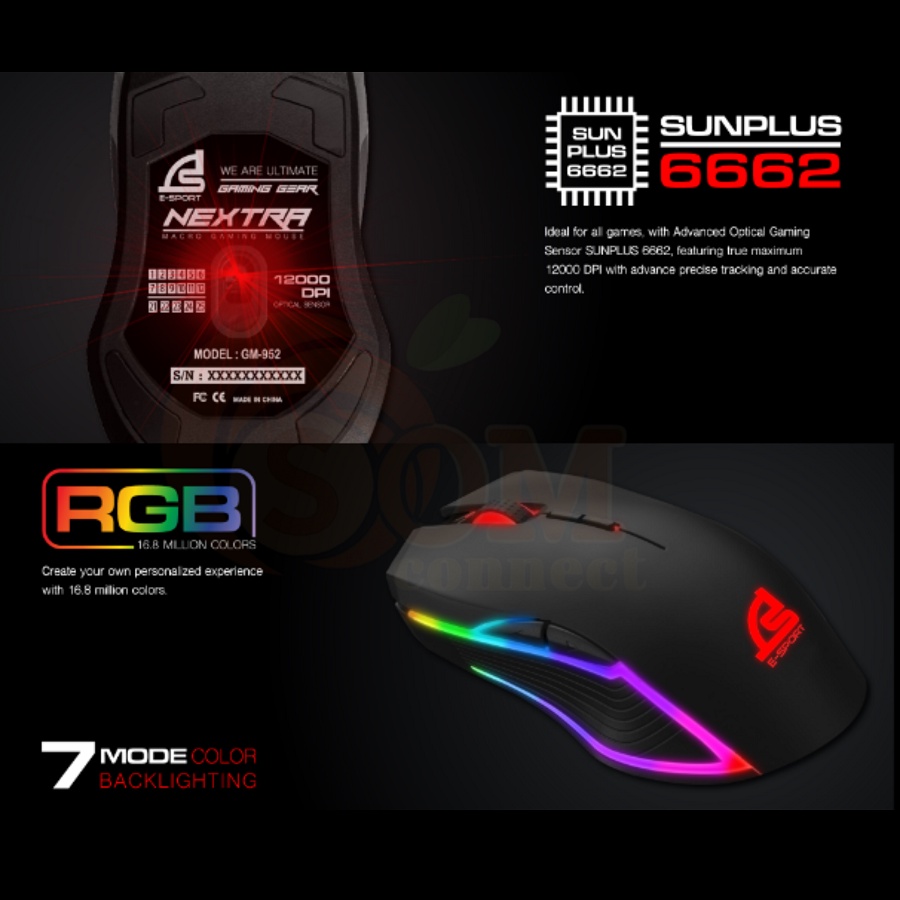 MOUSE (เมาส์สาย) SIGNO GM-962 (LANGER) แสงไฟ RGB เปลี่ยน10โหมด USB2.0 สาย 1.8M ประกัน 2 ปี ของแท้