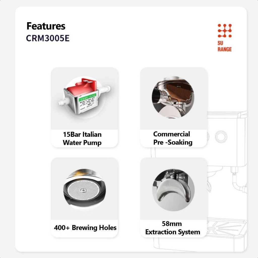 Gemilai CRM3005E Coffee Machine ตัวสแตนเลสทั้งหมด เครื่องชงกาแฟอัตโนมัติ ขนาดหัวชง 58mm เครื่องชงกาแฟเชิงพาณิชย์