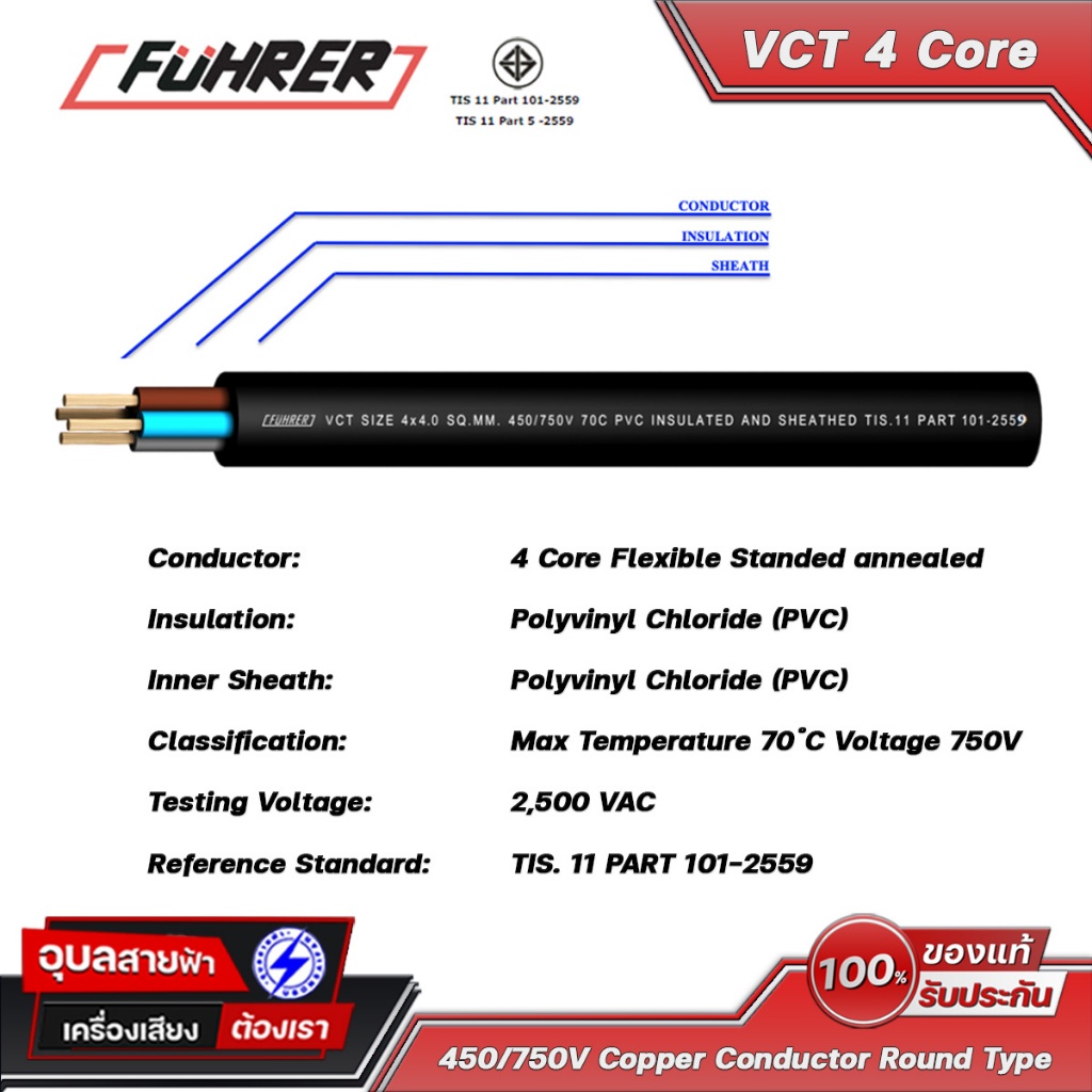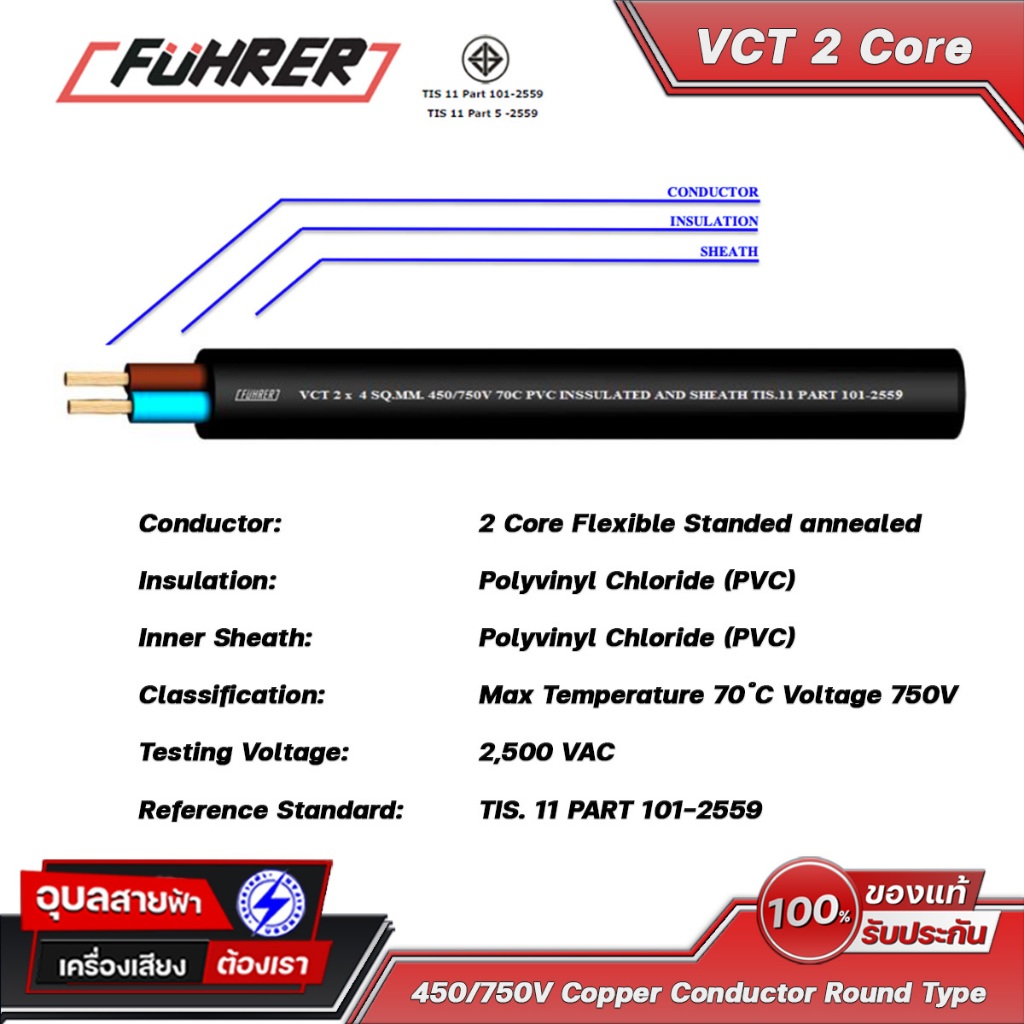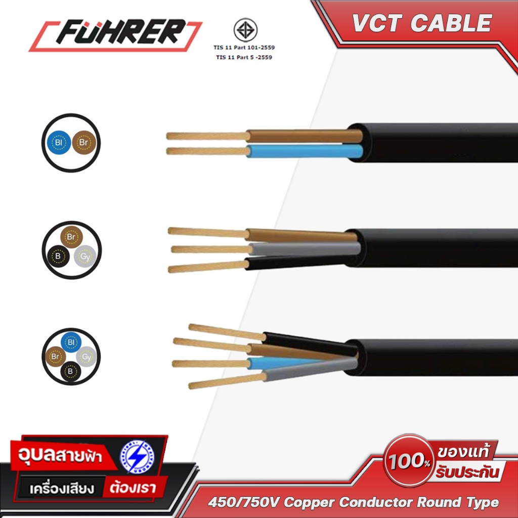 Fuhrer IEC52 VCT สายไฟวีซีที วัสดุอย่างดี นิ่มเก็บง่าย ทองแดงแท้ 300-500V High Voltage Power cable
