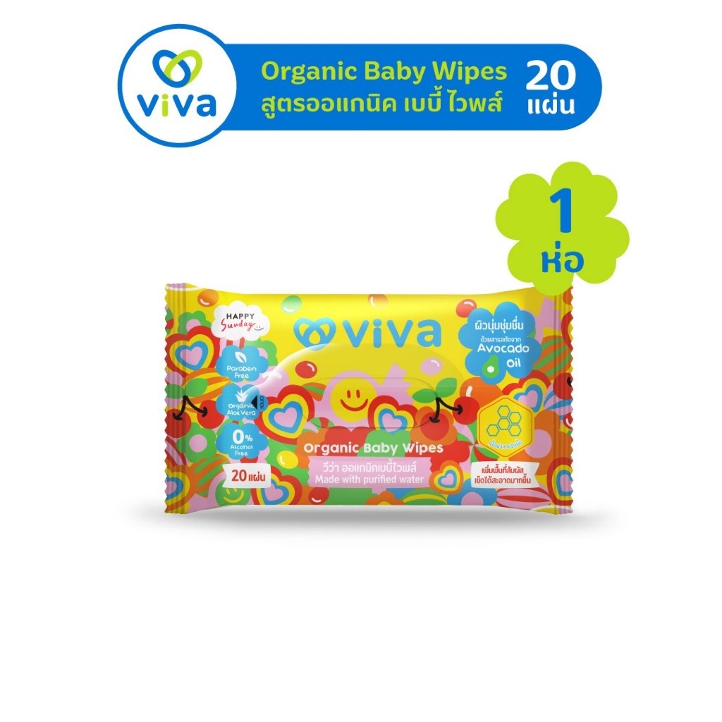 *[ซื้อ 1 แถม 1] Viva Organic Baby Wipes 20s - วีว่า ออแกนิคเบบี้ไวพส์ 20 แผ่น