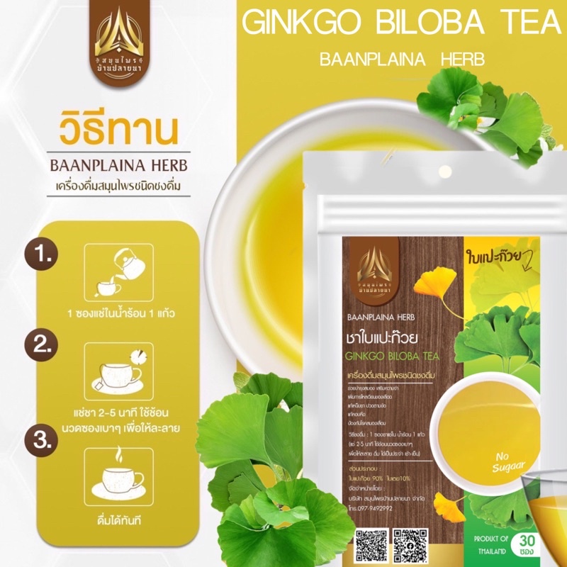 ชาใบแปะก๊วย (Gingko biloba Tea) บำรุงสมอง เสริ มความจำ ชนิดซองแช่ดื่ม มีให้เลือก2ขนาด