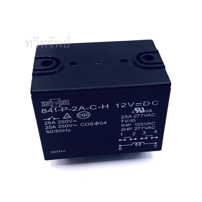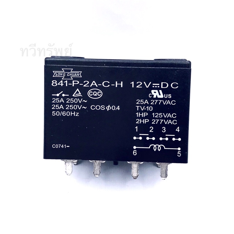 841-P-2A-C-H Power Relay รีเลย์ 1 คอนเเทค 6 ขา 25A 12VDC ขาแหลมลงปริ๊น มีของพร้อมส่งในไทย