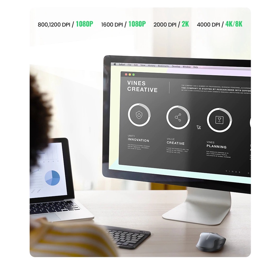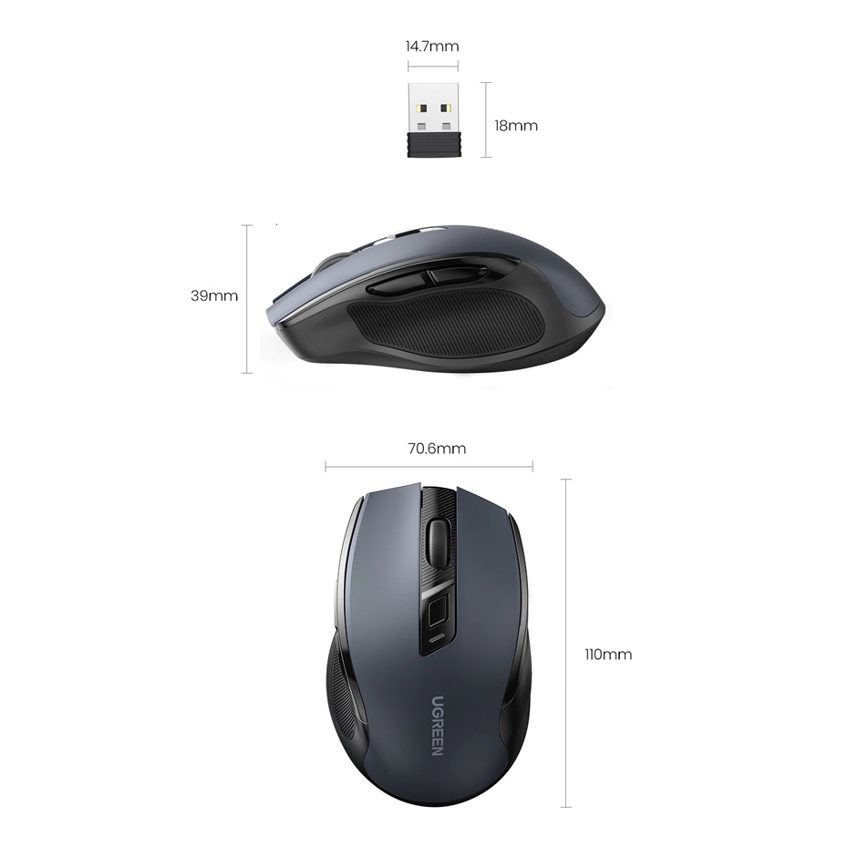 Ugreen Mouse Wireless Ergonomic Shape Silent Click 4000 DPI