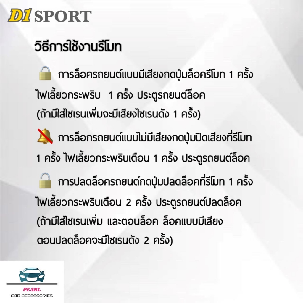 D1 Sport รีโมทล็อค/ปลดล็อคประตูรถยนต์ Y151-4 กุญแจทรง Toyota สำหรับรถยนต์ทุกยี่ห้อ อุปกรณ์ในการติดตั้งครบชุด คู่มือในการ