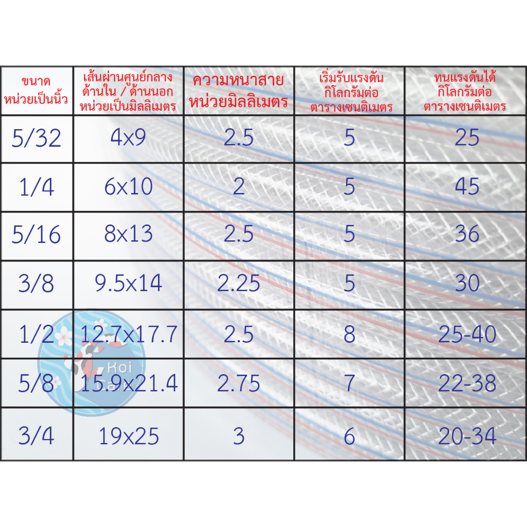 สายแก๊สอย่างดี ขนาด หุนหลี , 2 หุน , 2.5 หุน , 3 หุน , 4 หุน , 5 หุน , 6 หุน (ราคาต่อเมตร)