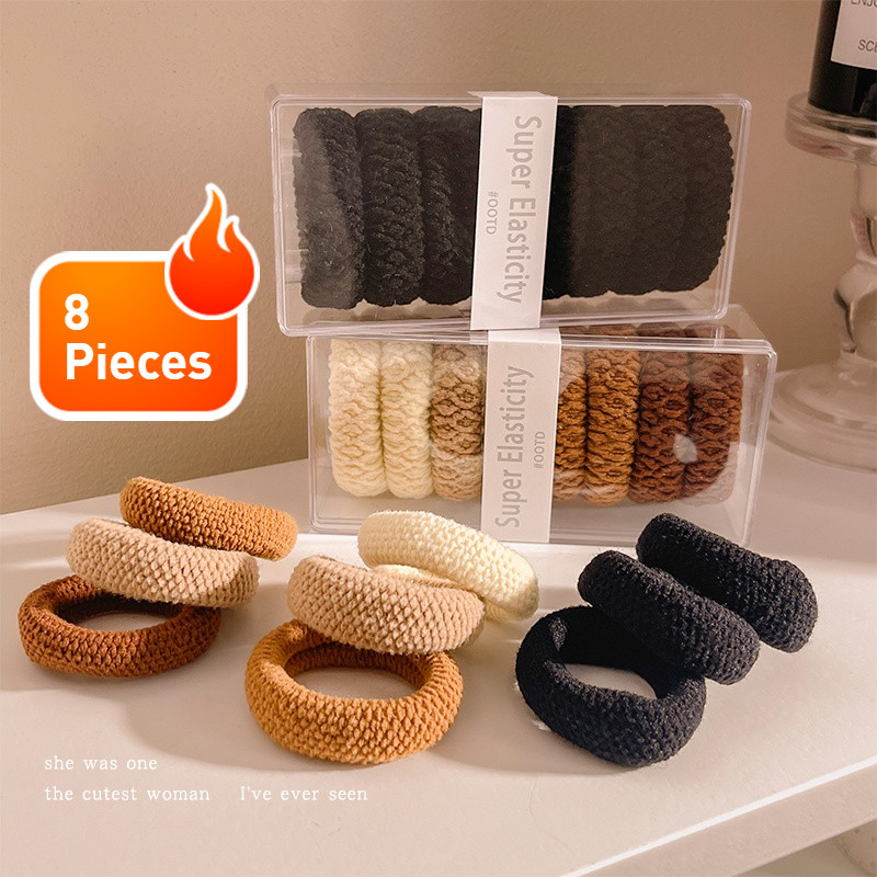 8 ชิ้นชุด ยางรัดผม เชือกผูกผมยืดหยุ่นสูงผ้าหนาผูกผมหางม้าสําหรับผู้หญิง