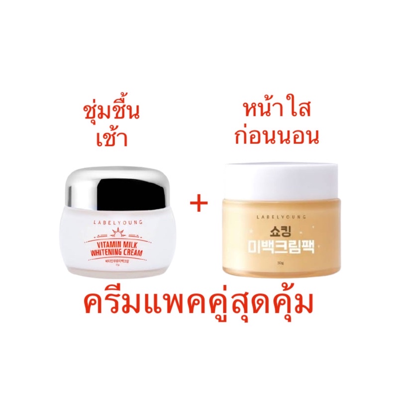 (สั่งในไลฟ์ลด50%) ล๊อตใหม่ล่าสุด ครีมหน้าสด LABELYOUNG vitamin milk whitening cream 55g.