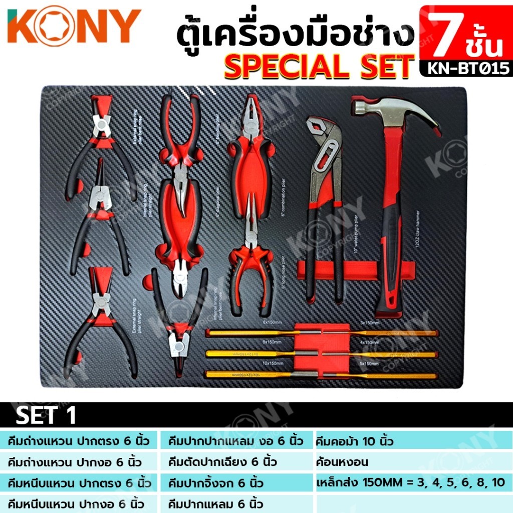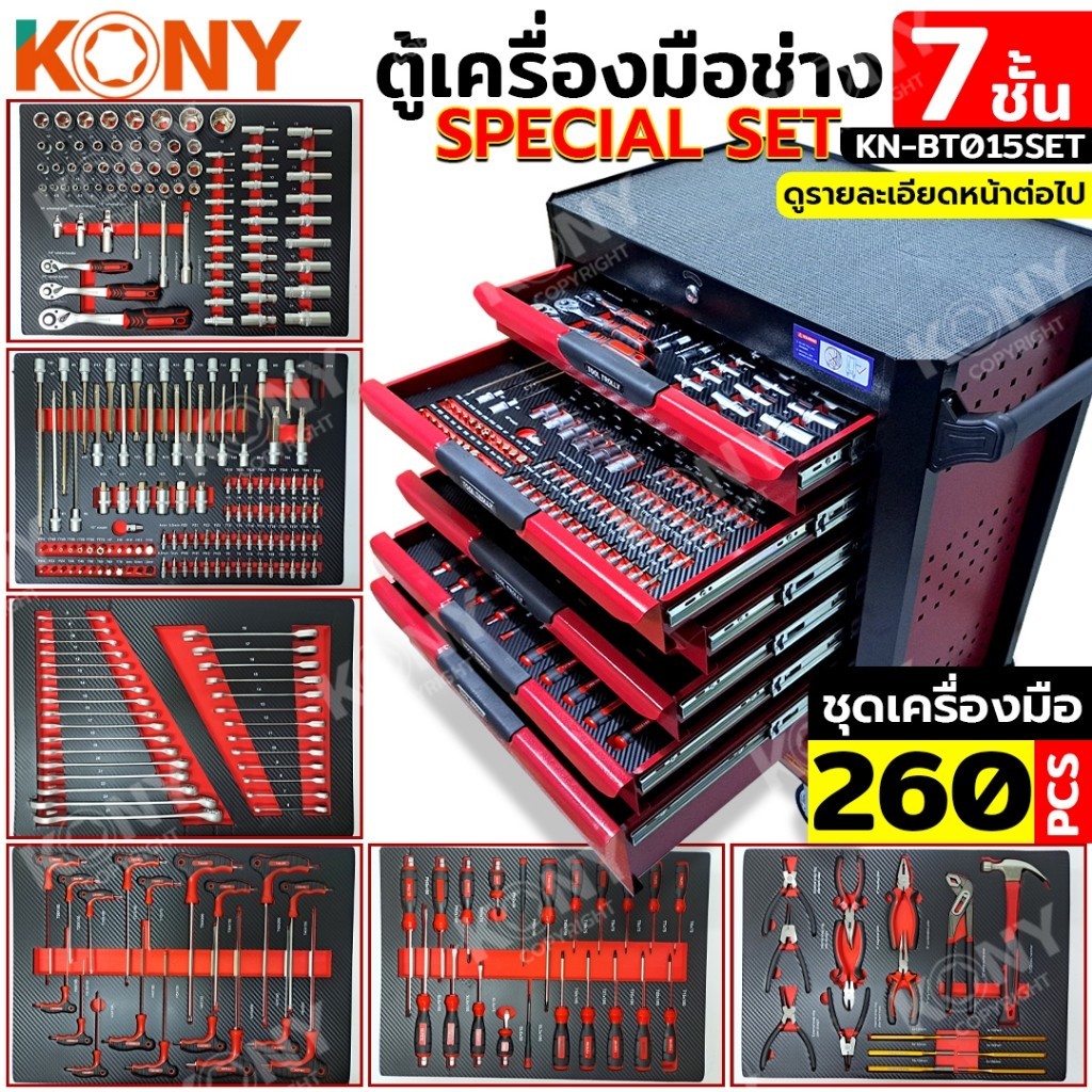 MT KONY ตู้เครื่องมือช่าง 7 ชั้น มีล้อ (AA) และชุดเครื่องมือช่าง 260 ชิ้น ) (ออกใบกำกับภาษีได้)
