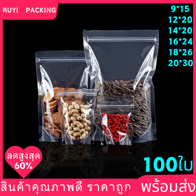(แพ็คละ 100ใบ) ถุงพลาสติกใส ตั้งได้ ถุงรูดใส ซองขนม โพลีใส พร้อมส่งในไทยCOD