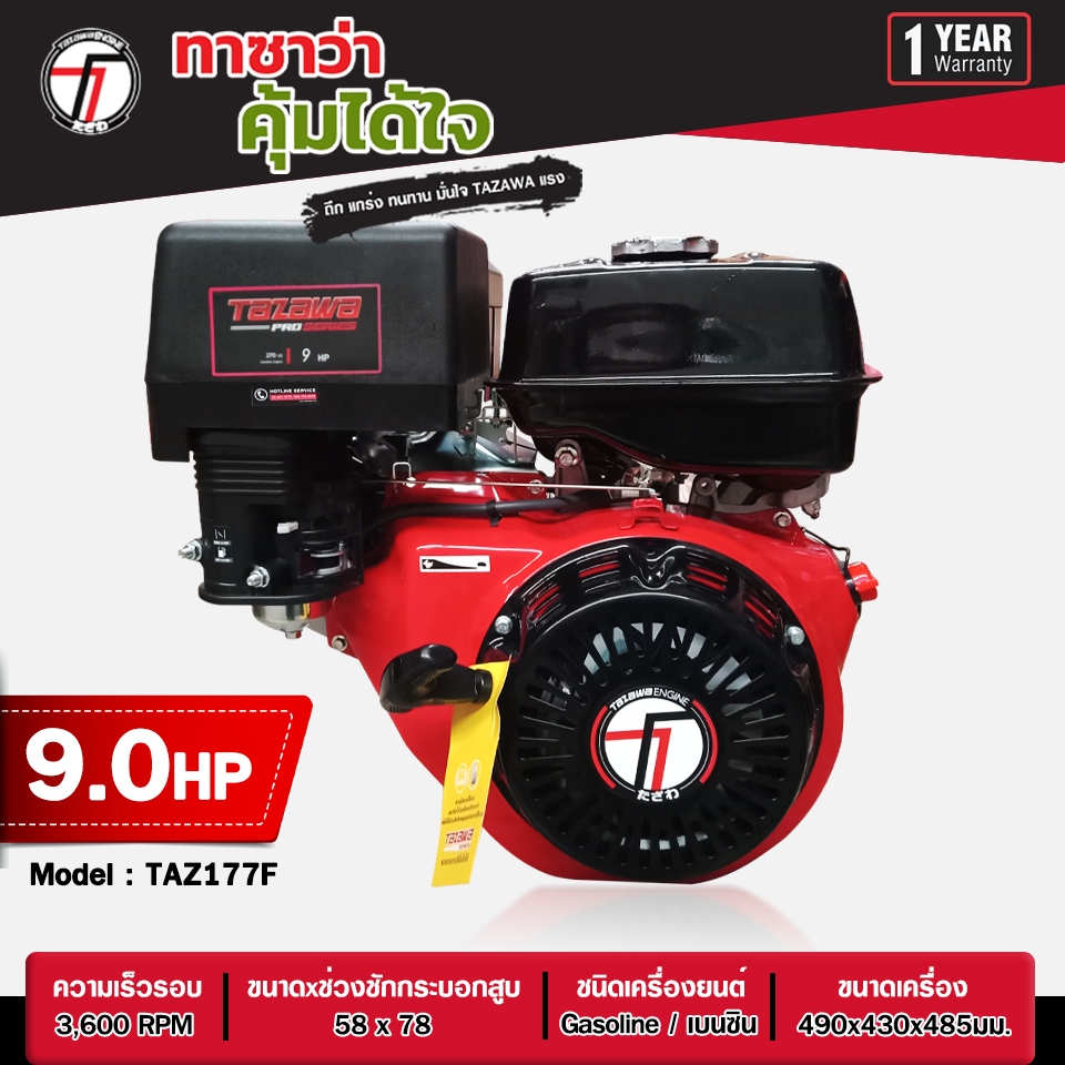 เครื่องยนต์เบนซิน อเนกประสงค์ TAZAWA Pro รุ่น TAZ-177F/E ขนาด 9.0Hp