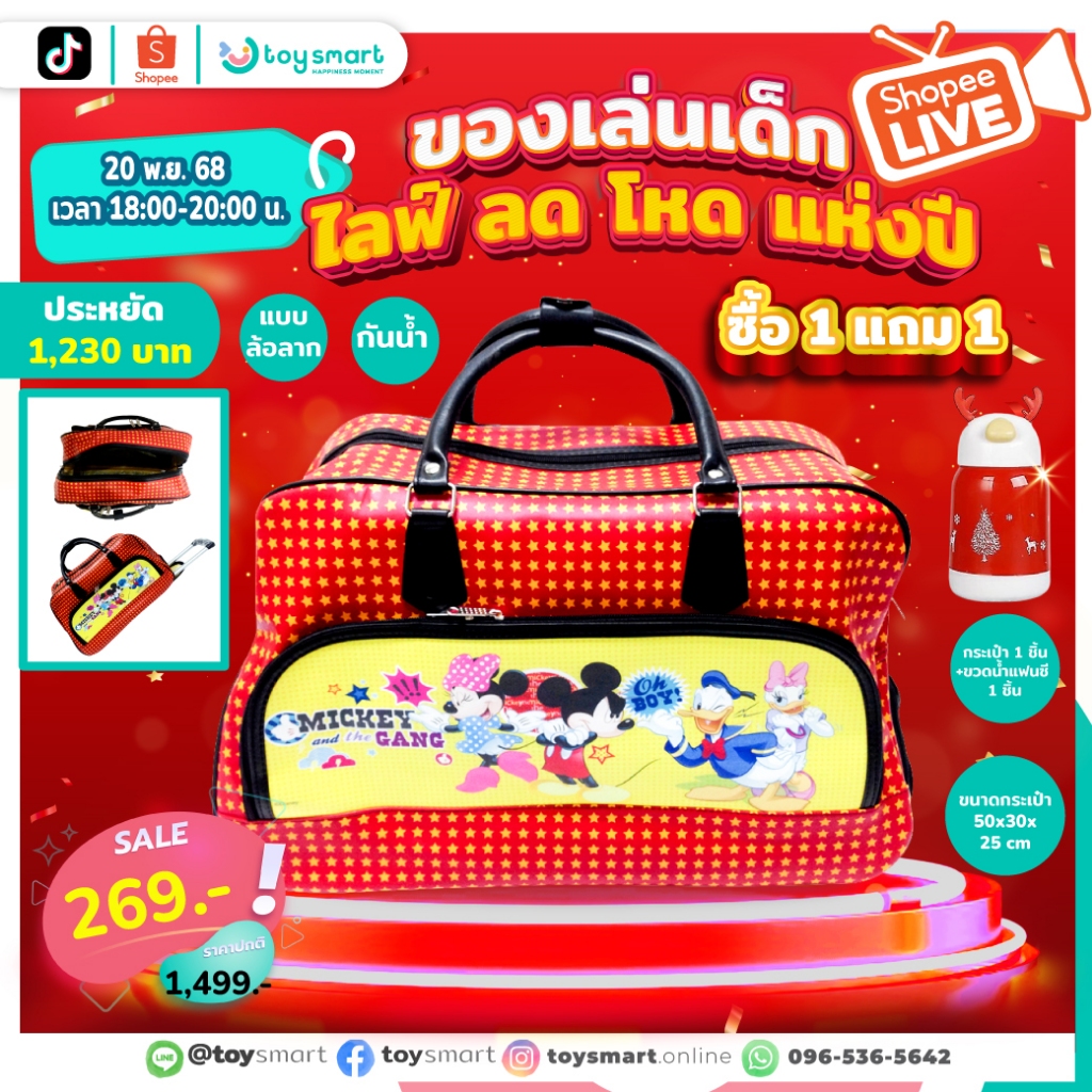 เฉพาะไลฟ์ Mickey Mouse กระเป๋าขนาด 20 นิ้ว Disney(ดิสนีย์) แถมขวดน้ำแฟนซี 1 ขวด ร้านเลือกสีขวดน้ำให้