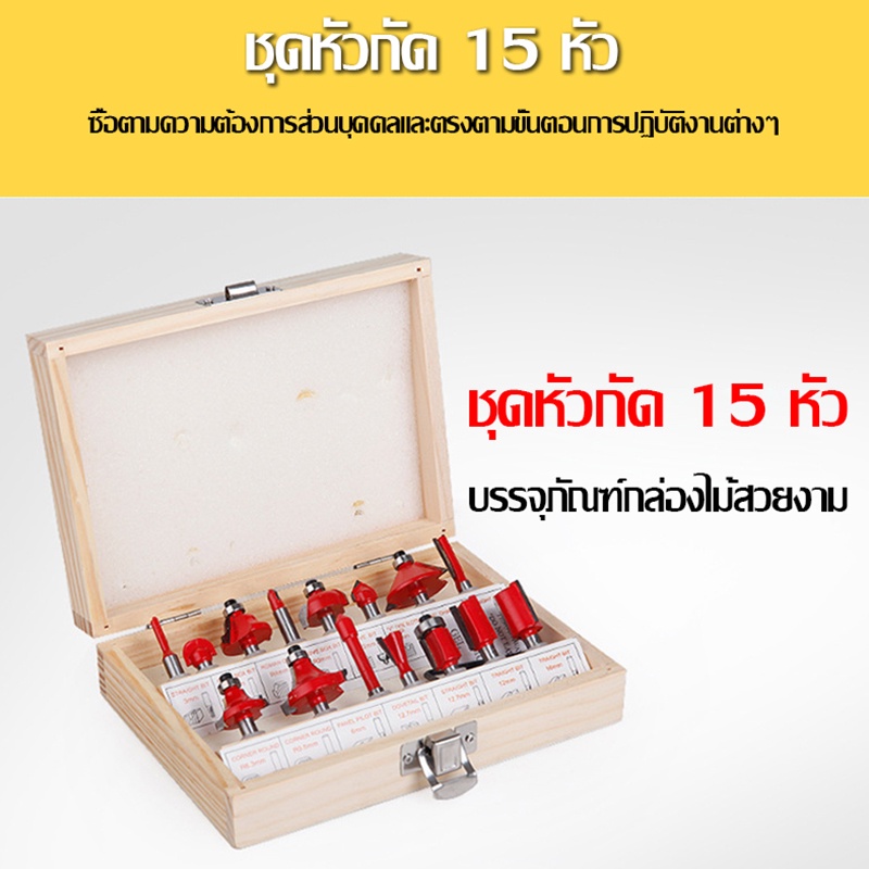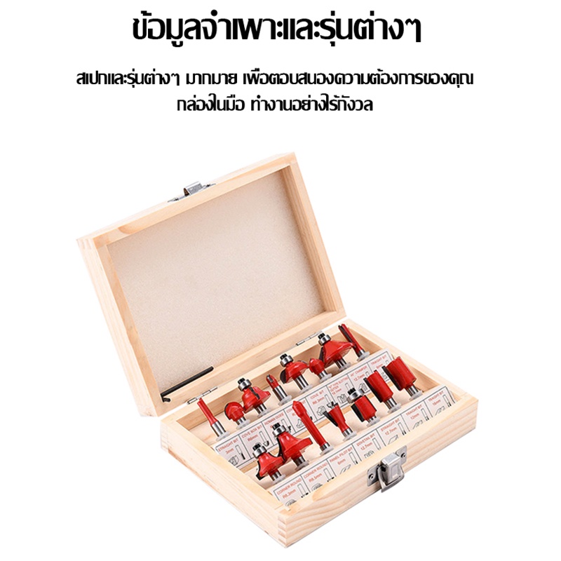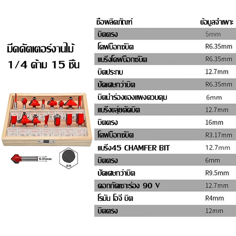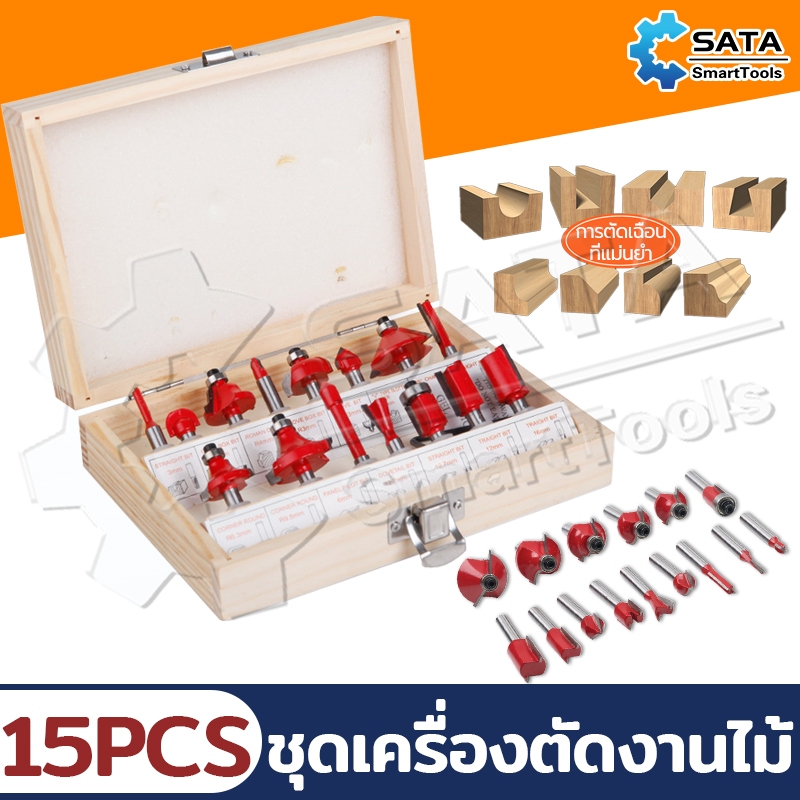 SA เครื่องมือช่าง ดอกเร้าเตอร์ ชุด ดอกเร้าเตอร์ ทริมเมอร์ ชุด 15 ดอก แกน(เล็ก) 1/4" (6.35mm) บรรจุในกล่องไม้