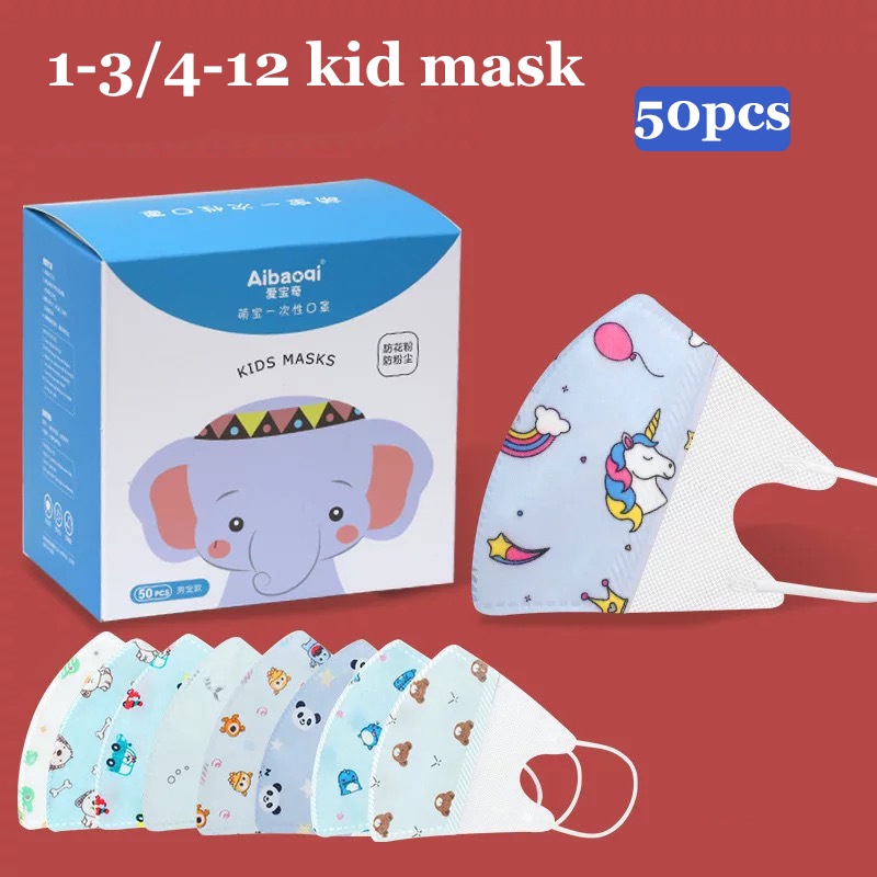 【0-3/4-12 Yo】หน้ากากฉลาม 3D Kn95 สามมิติ สําหรับเด็ก 50 ชิ้น