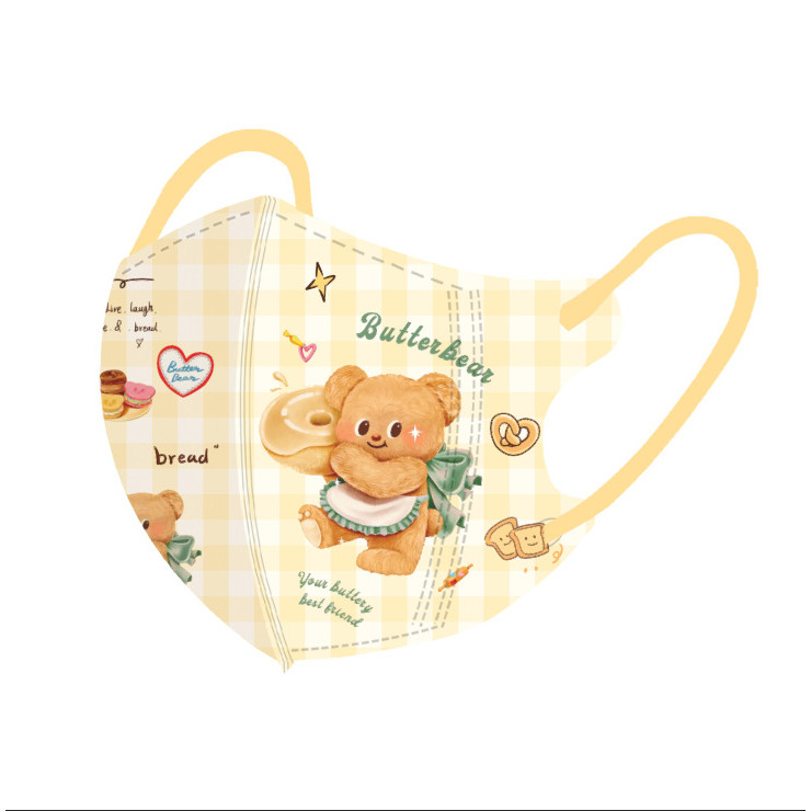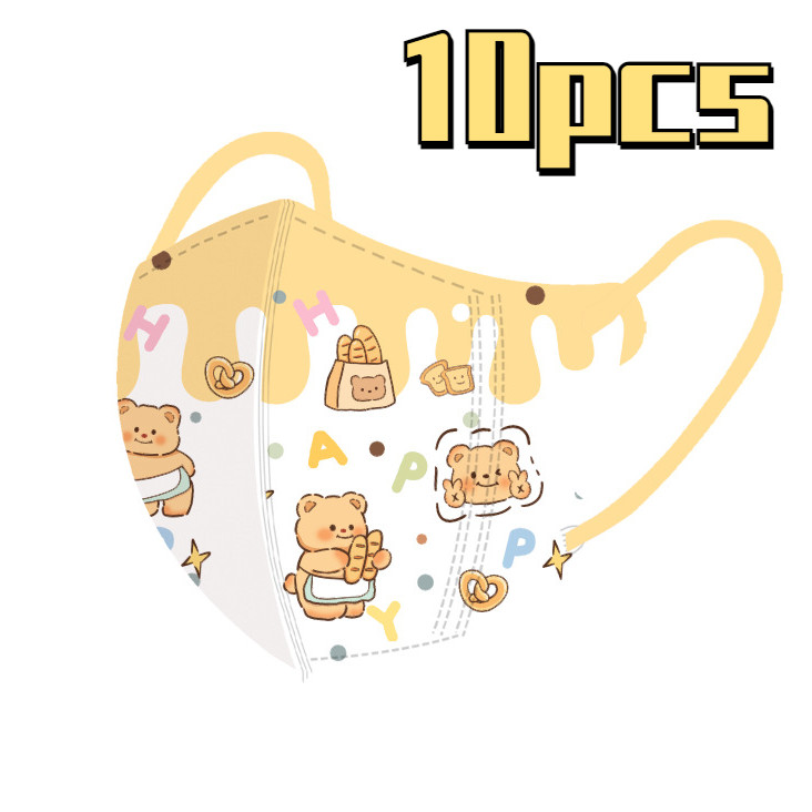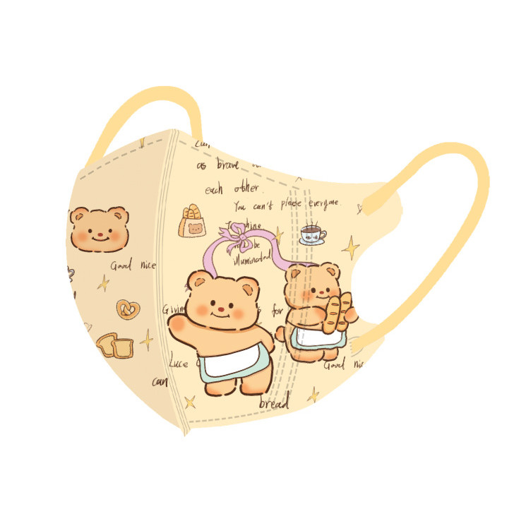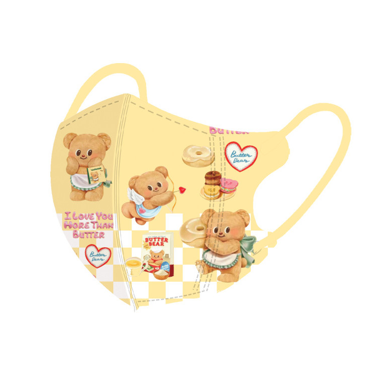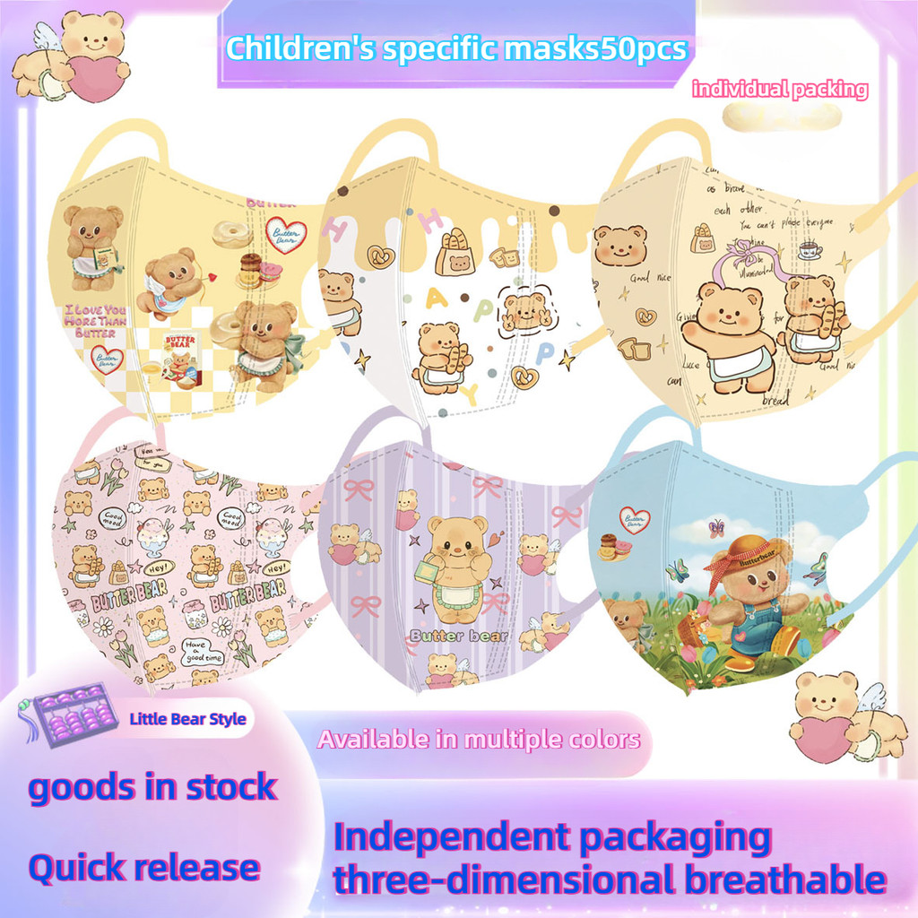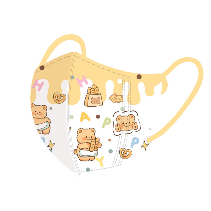หมีสีเหลืองน่ารักการ์ตูนหน้ากากเด็ก50ชิ้นบรรจุภัณฑ์อิสระหลายสีเนยหมี3-12ageเด็กหน้ากาก