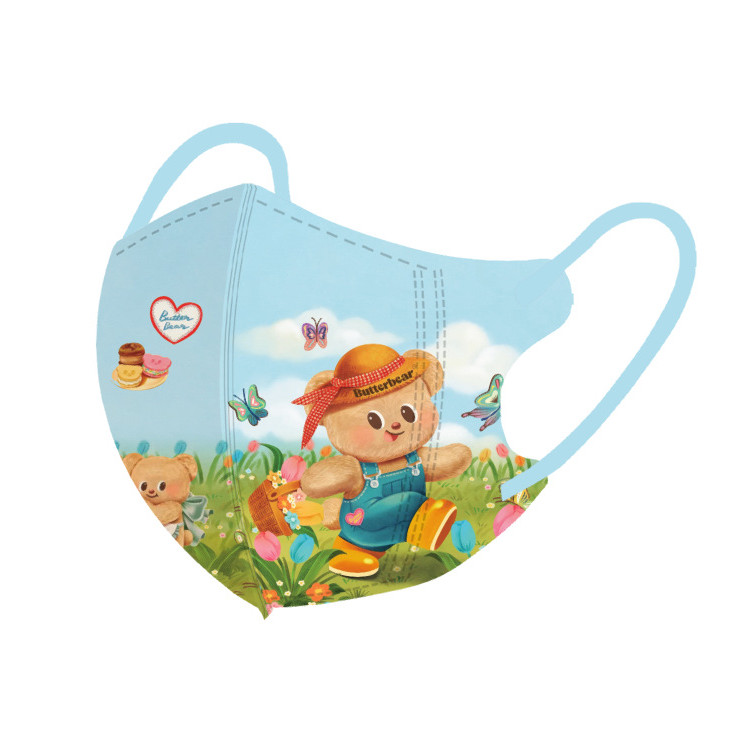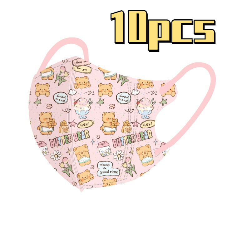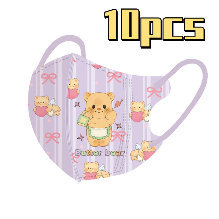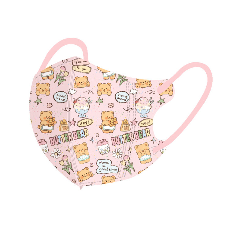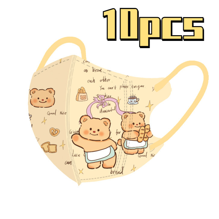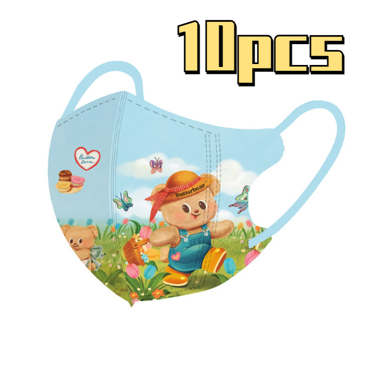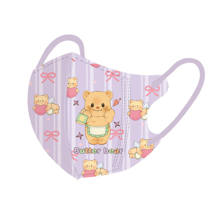 หมีสีเหลืองน่ารักการ์ตูนหน้ากากเด็ก50ชิ้นบรรจุภัณฑ์อิสระหลายสีเนยหมี3-12ageเด็กหน้ากาก