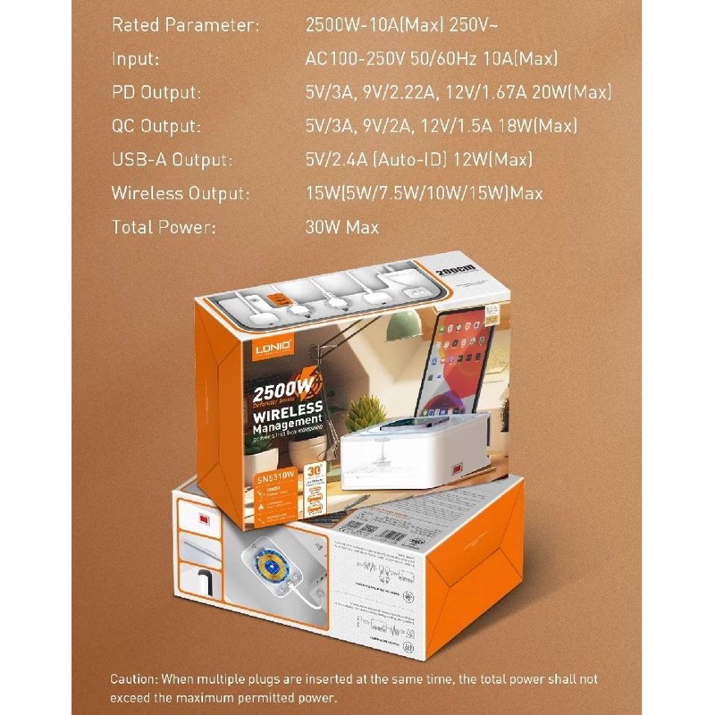 พร้อมส่งLDNIO SN5311W( ชาร์จแบบไร้สาย15W ) รางปลั๊กพร้อมตัวจัดระเบียบ SN5311Wไม่มีไวเลตชาร์จค่ะ