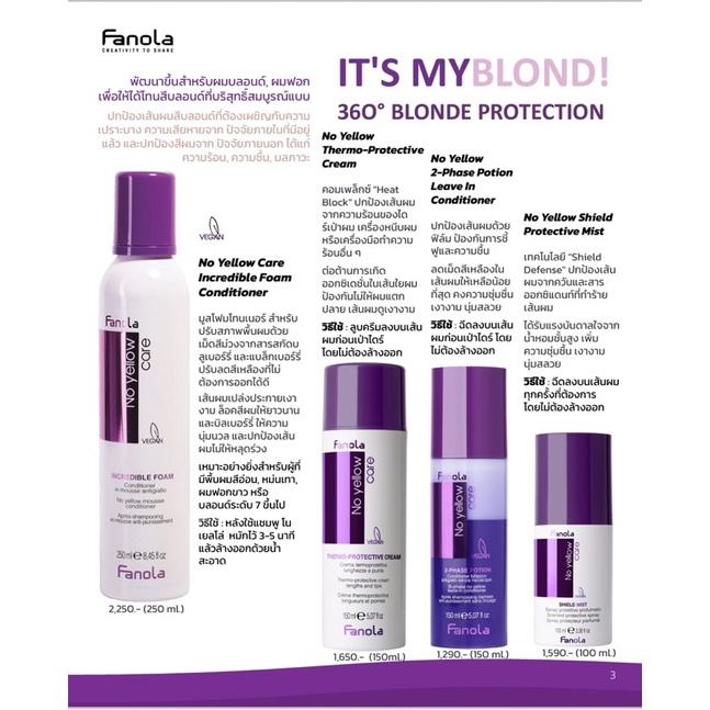 มูสโฟมโทนเนอร์ ปรับสภาพผมด้วยเม็ดสีม่วงจากสารสกัดบลูเบอร์รี่ No Yellow Care Incredible Foam Conditioner 250ml. by Fanola