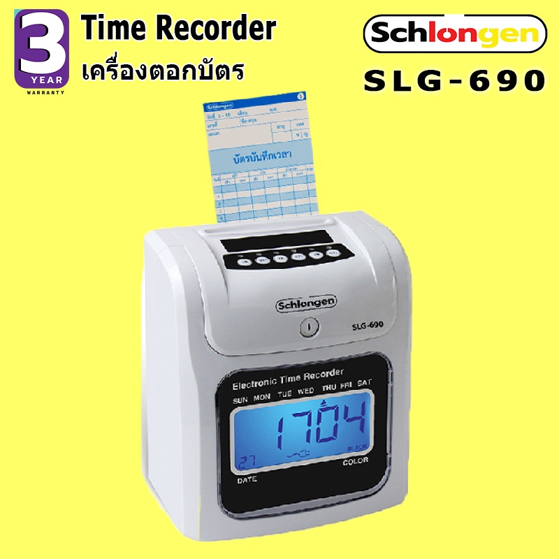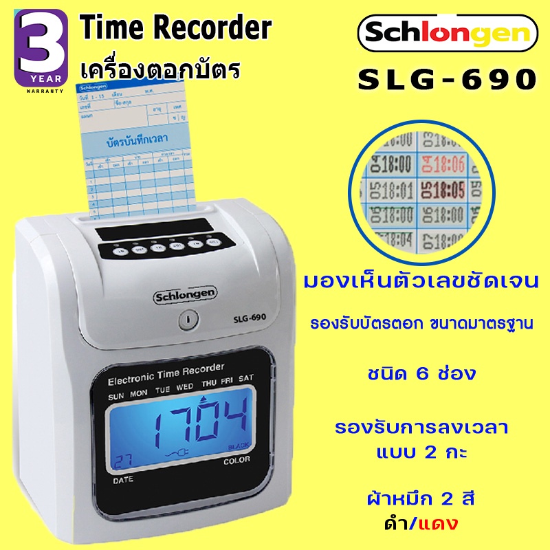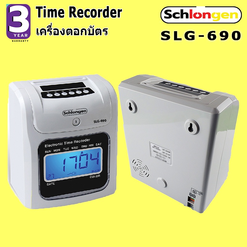 SCHLONGEN Time Recorder เครื่องตอกบัตร ชลองเกน #SLG-690 (รับประกันศูนย์ 2 ปี)(แถมฟรี บัตรตอกเวลา 50 ใบ) + ผ้าหมึก 1 ตลับ