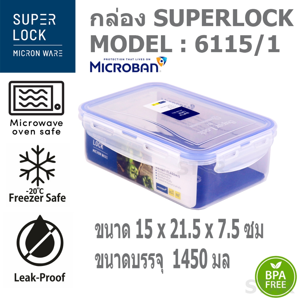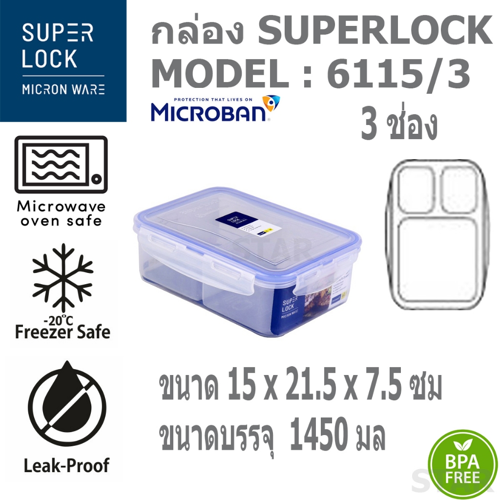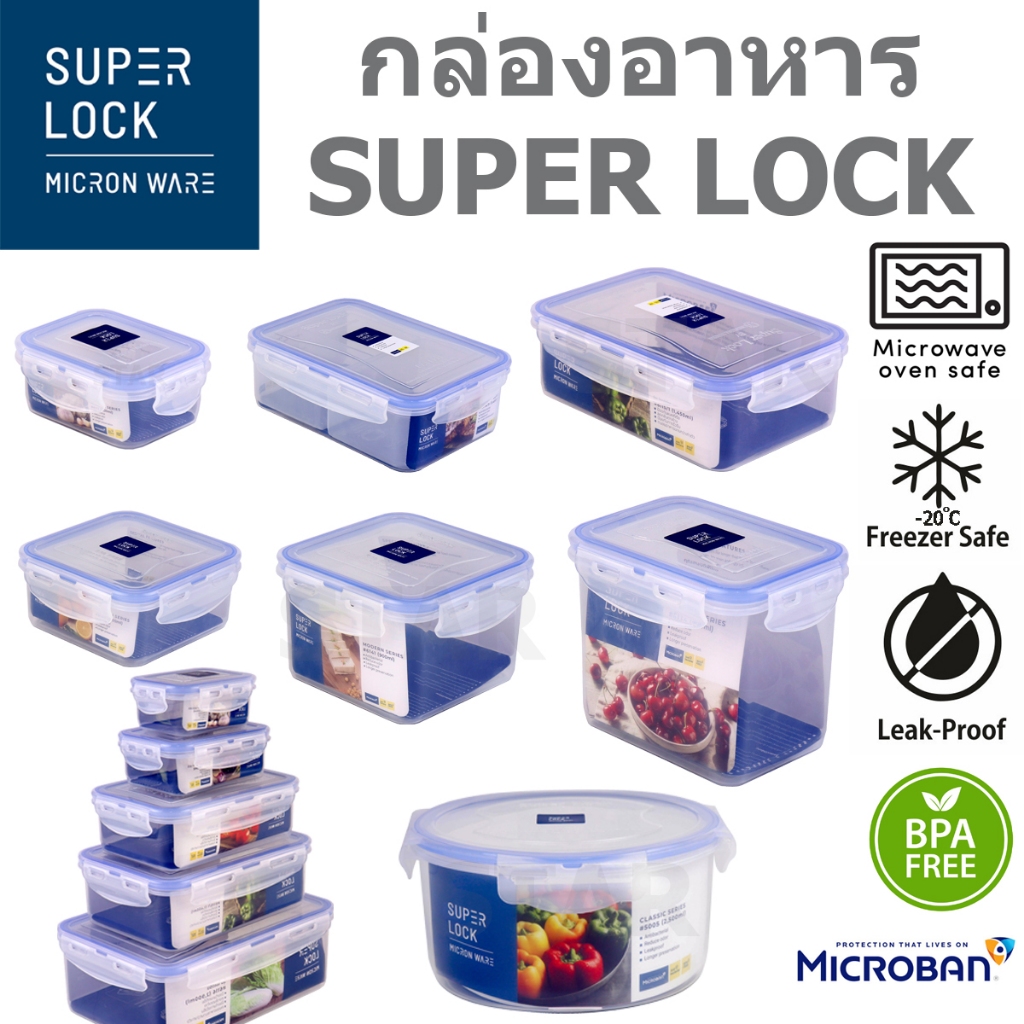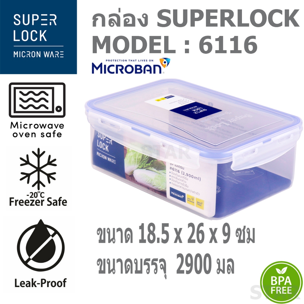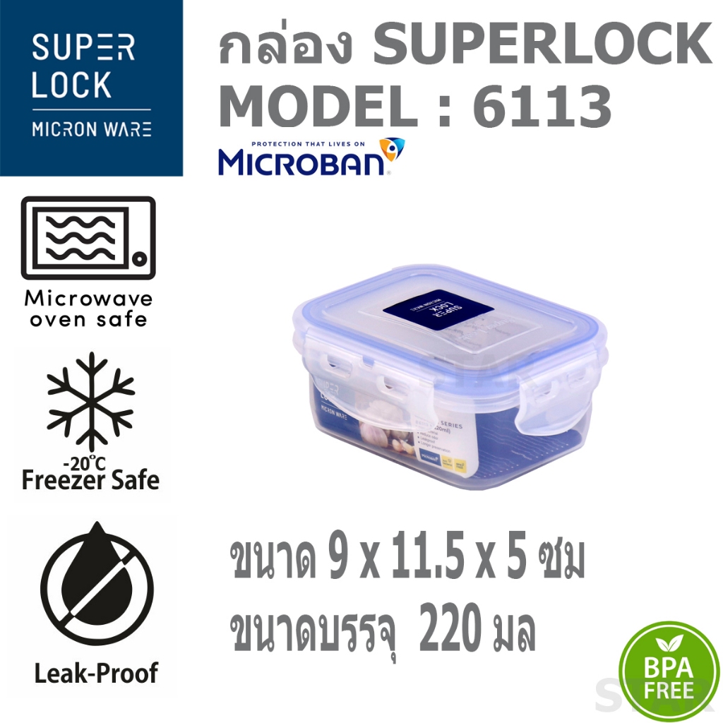 กล่องข้าว SUPER LOCK กล่องถนอมอาหาร กล่องใส่อาหาร เข้าไมโครเวฟได้ ฝาล็อค กล่องใส่ผัก ช่องแข็ง ไม่สารก่อมะเร็ง 6113 6114