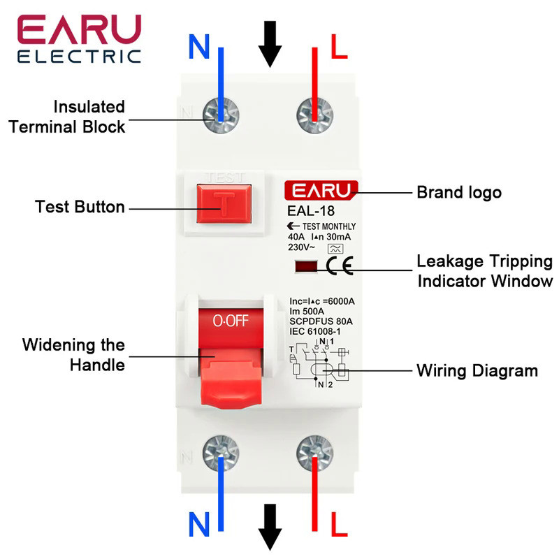 2p 4P 10/30/100/300mA ประเภท A RCCB RCD ELCB แม่เหล็กไฟฟ้า Residual Current Circuit Breaker Differential Breaker สวิทช์ความปลอดภัย