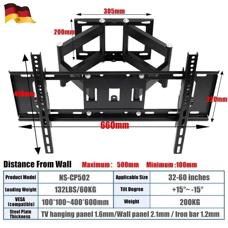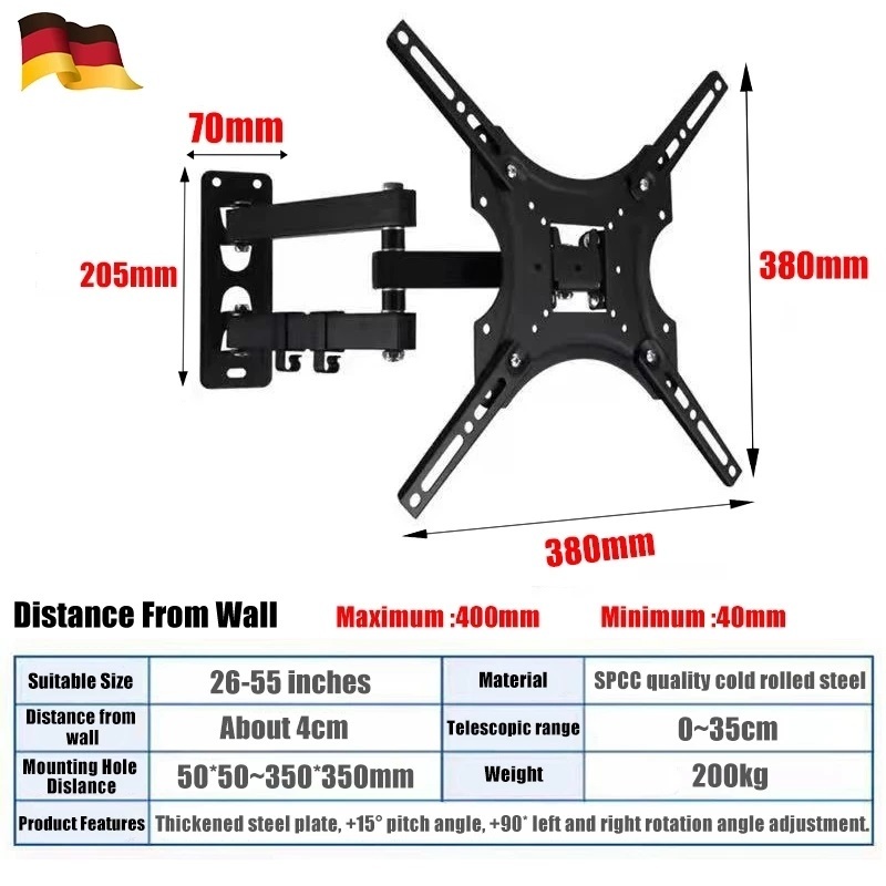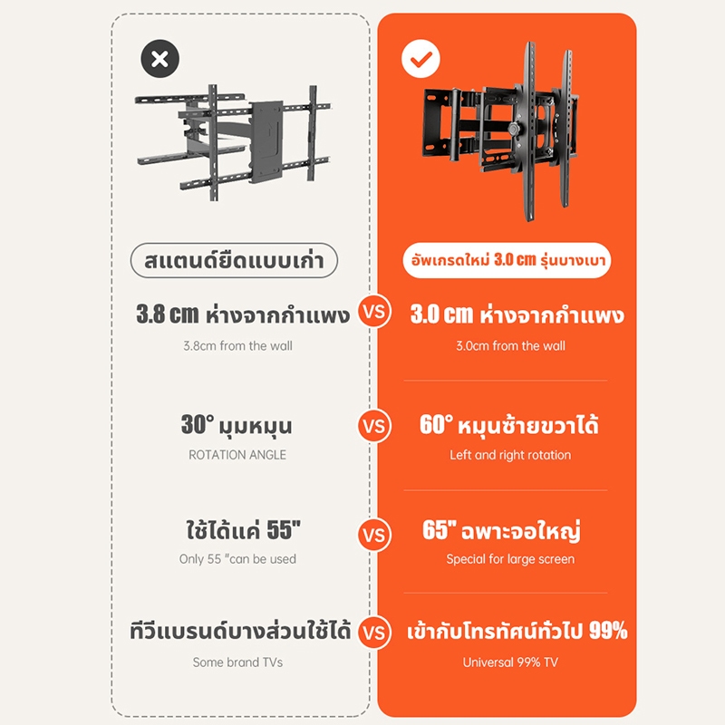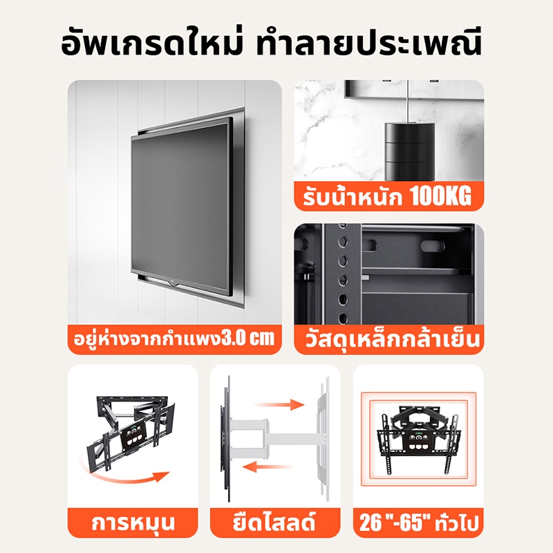 🔥เหมาะสําหรับ 26-60 นิ้ว🔥ขายึดทีวี ทีวีติดผนัง ปรับได้ 180° แขนหกแขนยืดไสลด์ ชุดขาแขวนทีวี ขาแขวนทีวี