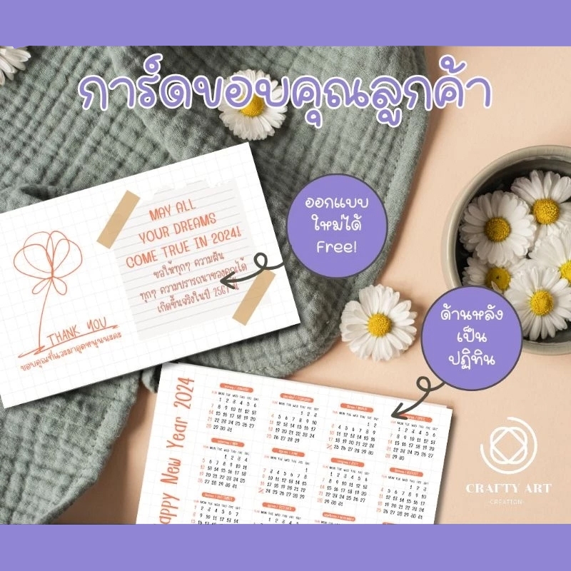 การ์ดปฏิทิน ขอบคุณลูกค้า ชนิดเคลือบแข็ง ออกแบบเองได้ตามต้องการ