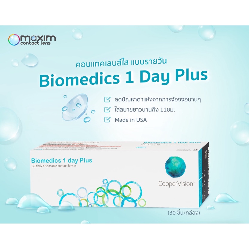คอนแทคเลนส์ใส รายวัน Biomedics 1 Day Plus 1 กล่อง มี 15 คู่ 📣 ซื้อ 1 กล่อง แถม ฟรี 1 กล่อง