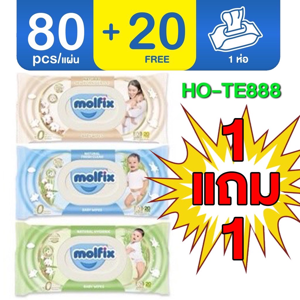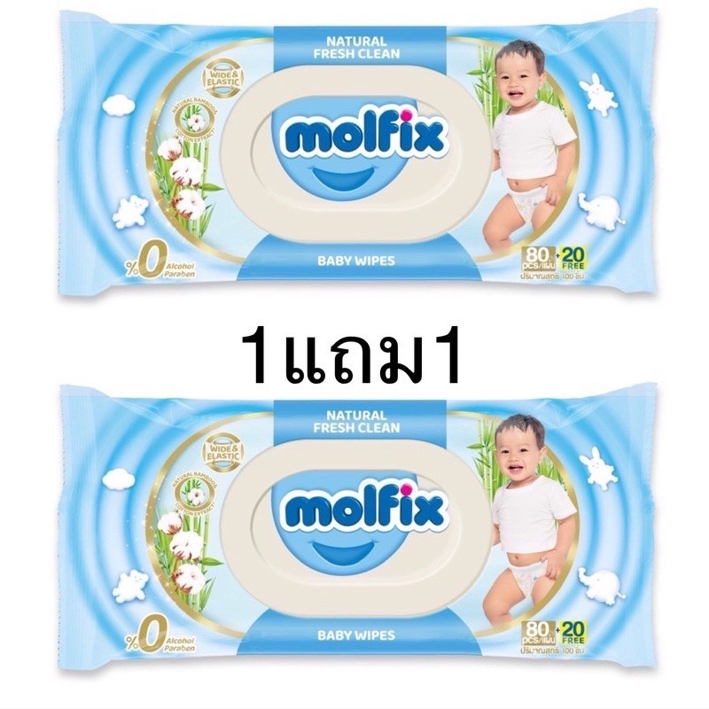 Molfix โมฟิกซ์ (1แถม1) ทิชชู่เปียก กระดาษเปียก ทิชชู มอลฟิกซ์ โมฟิก จากธรรมชาติ (80แผ่น + ฟรี 20 แผ่น) Molfix ทิชชู่เด็ก