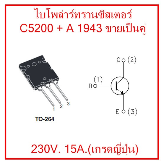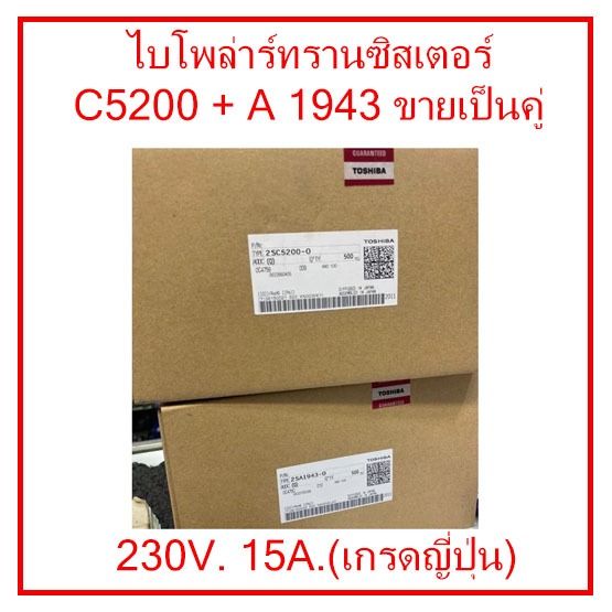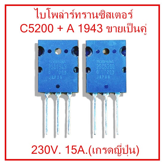 ไบโพล่าร์ทรานซิสเตอร์ C5200+A1943 ขายเป็นคู่ ทนแรงดัน 230V. 15A. สินค้าเกรรดญี่ปุ่น สินค้าในไทย ส่งไวทุกวัน